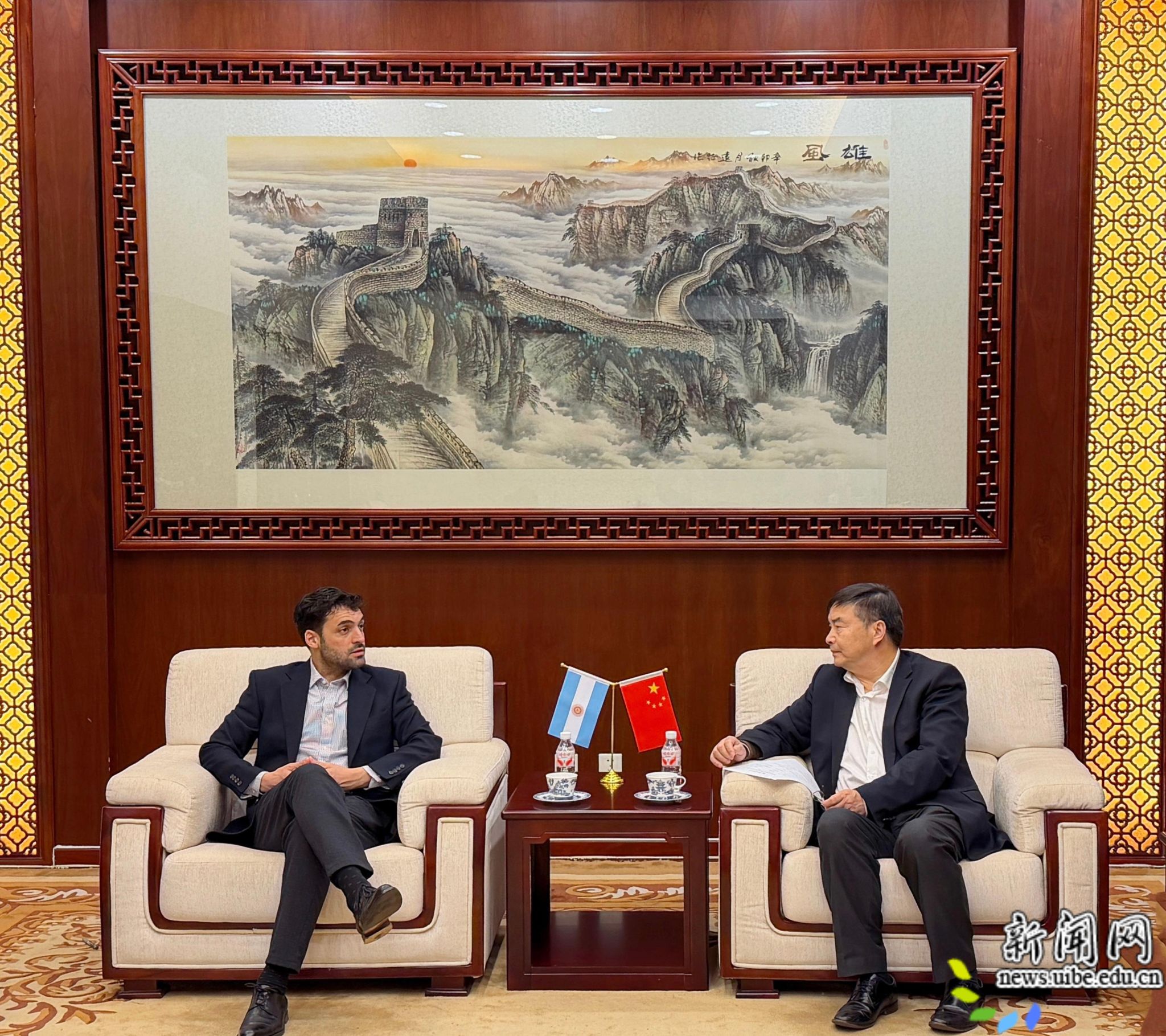 赵忠秀对Patricio Conejero Ortiz一行表示热烈欢迎,并介绍了我校在高水平教育对外开放方面的最新进展,尤其是在拉美地区的交流合作、孔子学院建设及区域国别研究等方面的成果。他表示,我校金砖国家研究中心作为教育部首批备案研究机构,担任金砖智库中方理事长单位,始终致力于在金砖合作框架下搭建开放共享的学术平台,整合国内外高校与研究机构优质资源,推动与金砖国家务实合作。赵忠秀表示,布宜诺斯艾利斯大学是阿根廷顶尖综合性高校,我校愿与其持续拓展多层次、多领域、跨学科协同合作,共同构建更加紧密的合作网络。