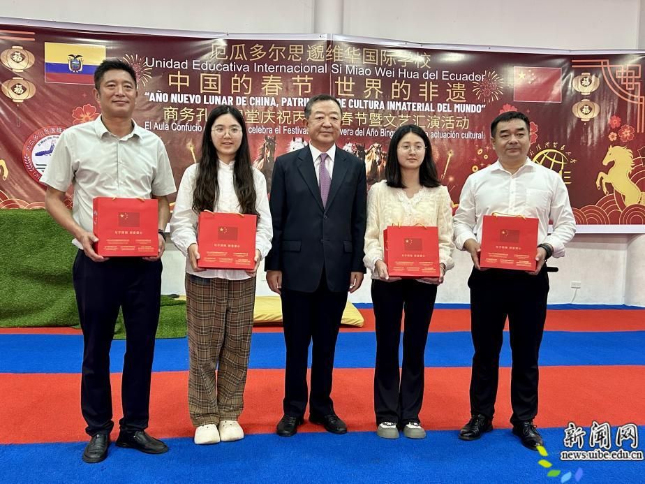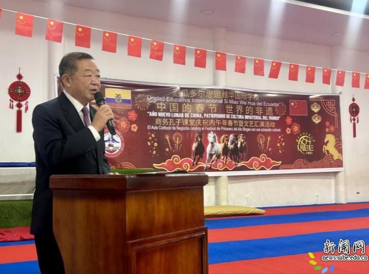 校新闻网讯(国际中文教育(商务)实践与研究基地供稿)当地时间2月18日,以“中国的春节,世界的非遗”为主题的庆祝丙午年春节暨文艺汇演活动,在我校厄瓜多尔思邈维华国际学校商务孔子课堂隆重举行。中国驻瓜亚基尔总领事高振廷, 部分周边市市长,厄瓜多尔公共卫生部、农业部代表,部分市议员,学生家长代表,思邈维华国际学校赴华留学生代表等应邀出席活动,与全校师生欢聚一堂,共庆中国春节,共话中厄友谊。现场张灯结彩、年味浓郁,洋溢着喜庆祥和、中厄友好的热烈氛围。