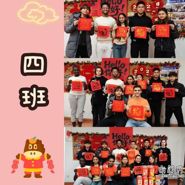 校新闻网讯(国际学院供稿)岁序更替,华章日新。在2026年农历新年来临之际,对外经济贸易大学国际学院预科部以“迎新春”为主题,于寒假期间开展了一场贯穿笔墨、心愿与光影的春节系列文化活动。让远离故土的留学生们,在异国他乡的冬日里,触摸中国年的温度,也用自己的方式,将中国年的温暖与希望定格在贸大校园。