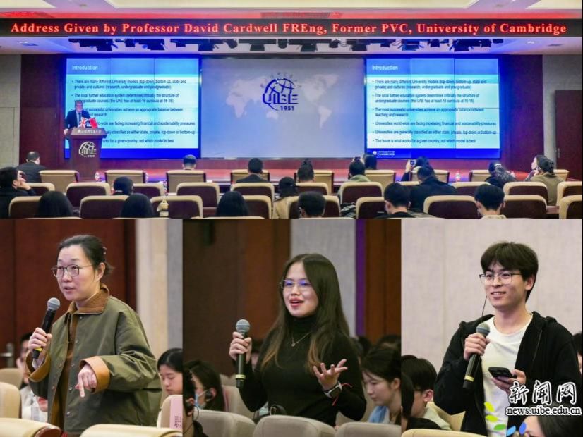 当日,David Cardwell为我校师生带来题为“AI时代全球大学管理”的专题讲座,他围绕国际高等教育体系差异、高校战略规划与治理、教学科研协同发展等内容,分享了剑桥大学在学科建设、跨学科研究、资源配置及国际合作等方面的实践经验。他指出,AI 正深刻重塑教育教学与科研创新模式,高校应做好战略规划,推动学科交叉融合,加强国际协同合作,重视多元包容与人才质量。讲座内容详实、视角前沿,现场师生积极交流互动,氛围热烈。