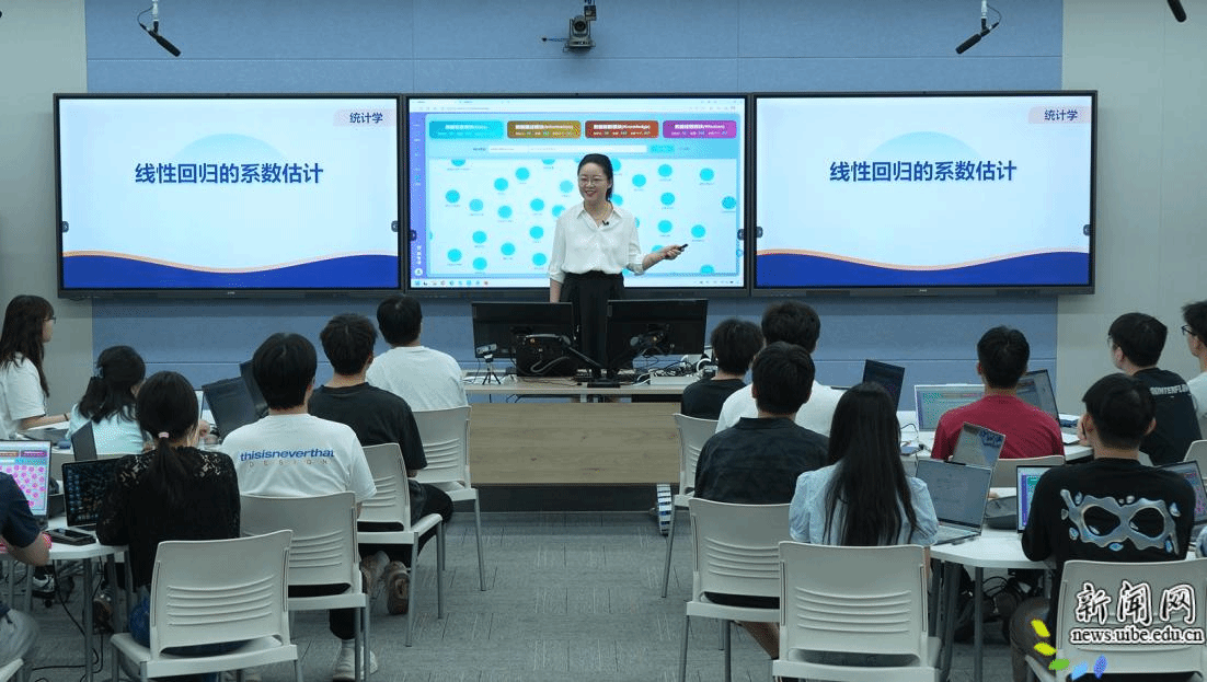 教学与科研从不分离,而是相互滋养。我的第一门研究生课程是《统计案例研究》,我尝试让课堂与科研“共振”:将AI赋能的统计模型融入经济金融的真实案例,讲述自己主笔完成提交给国家发改委的研究报告,分享参与我国数字经济领域国家标准制定的数据实践,引导学生体悟“统计报国”。该课程成果获“全国应用统计专业学位研究生教育教学成果奖”。