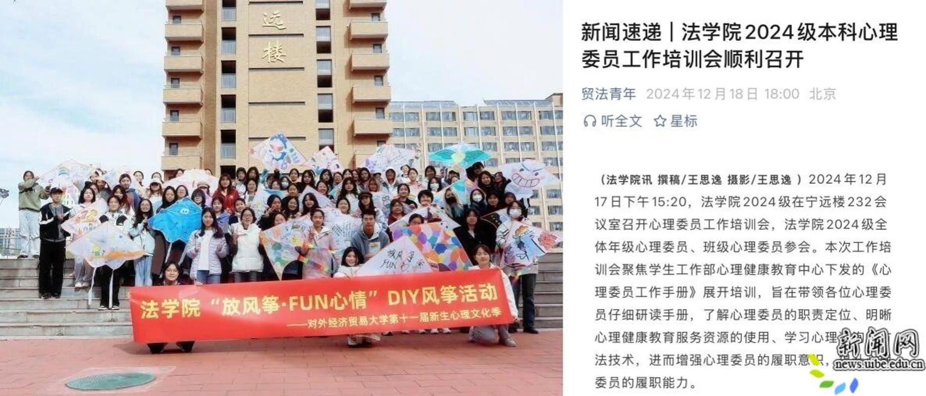 校新闻网讯(法学院供稿)心理健康工作是守护学生心灵成长、促进学生全面发展的重要基石。法学院高度重视心理健康教育工作,尤为注重心理委员队伍建设,培育出一批温暖真诚、专业扎实、责任心强的骨干力量。作为2024级年级心理委员,王思逸同学始终以真诚服务为出发点,用扎实的行动为同学们的心理健康保驾护航,获评校级2024-2025学年优秀心理委员。