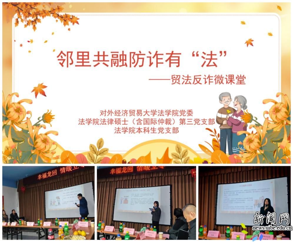 在反诈普法环节,法律硕士(含国际仲裁)第三党支部充分发挥专业特长,紧扣老年群体高频受骗类型,精心设计了一堂“邻里共融,防诈有‘法’”专题课程。支部积极分子黄志飞以“远离保健品骗局”为主题,通过剖析“抛诱饵”“拉关系”“造恐慌”“强收割”等典型套路,深入浅出地讲解保健品诈骗的识别技巧;党务助理邵一婷聚焦投资理财诈骗,结合“以房养老”真实案例揭示高回报陷阱,提醒老人们守好养老“钱袋子”;支部书记林雨萌针对新型AI情感诈骗,详解AI换脸、变声等诈骗手段,传授“动作验证法”“多渠道核实身份”等应对技巧。反诈微课通过具体案例拆解骗局套路,将专业法律知识转化为民众听得懂、记得住的语言,获得社区居民的广泛好评。