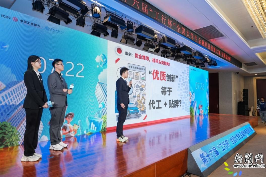 校新闻网讯(中国金融学院供稿) 12月6日,第十六届“工行杯”全国大学生金融科技创新大赛总决赛在校成功举办。来自全国各地的13组参赛选手齐聚决赛舞台,通过深入的思想交流与智慧互动,激发金融领域的创新思考,共同探索金融科技的无限可能。中国工商银行党委委员、副行长赵桂德,对外经济贸易大学校长、党委副书记赵忠秀出席大赛总决赛并致辞。