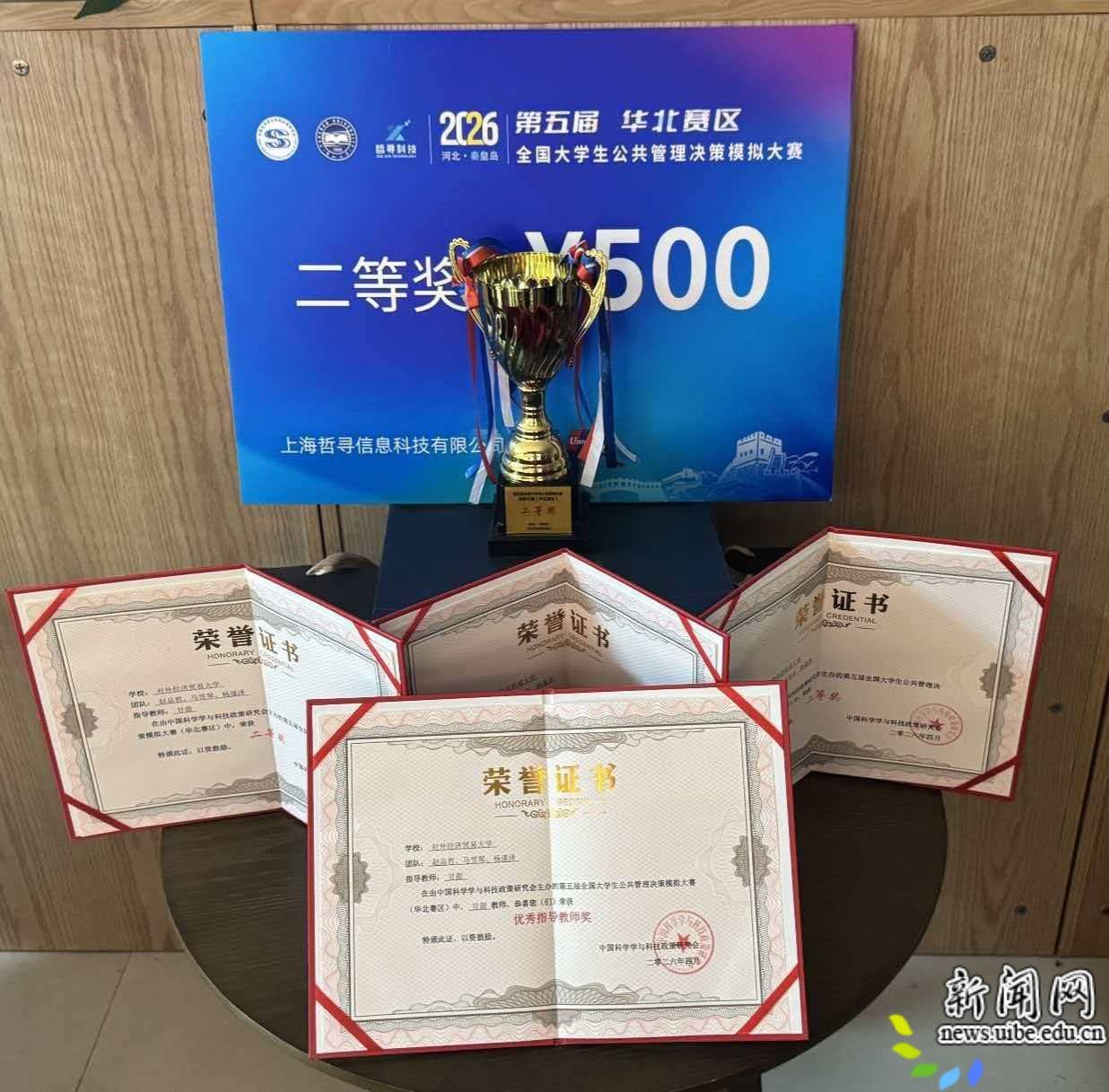 校新闻网讯(政府管理学院供稿)4月25日—26日,第五届全国大学生公共管理决策模拟大赛(华北赛区)在燕山大学顺利落幕。由对外经济贸易大学政府管理学院行政管理系甘甜老师带队指导,马雪琴、杨谨泽、赵品哲组成的对外经济贸易大学“政起地平线”代表队,在本次比赛中沉着应战、稳扎稳打,最终斩获华北赛区团体二等奖。