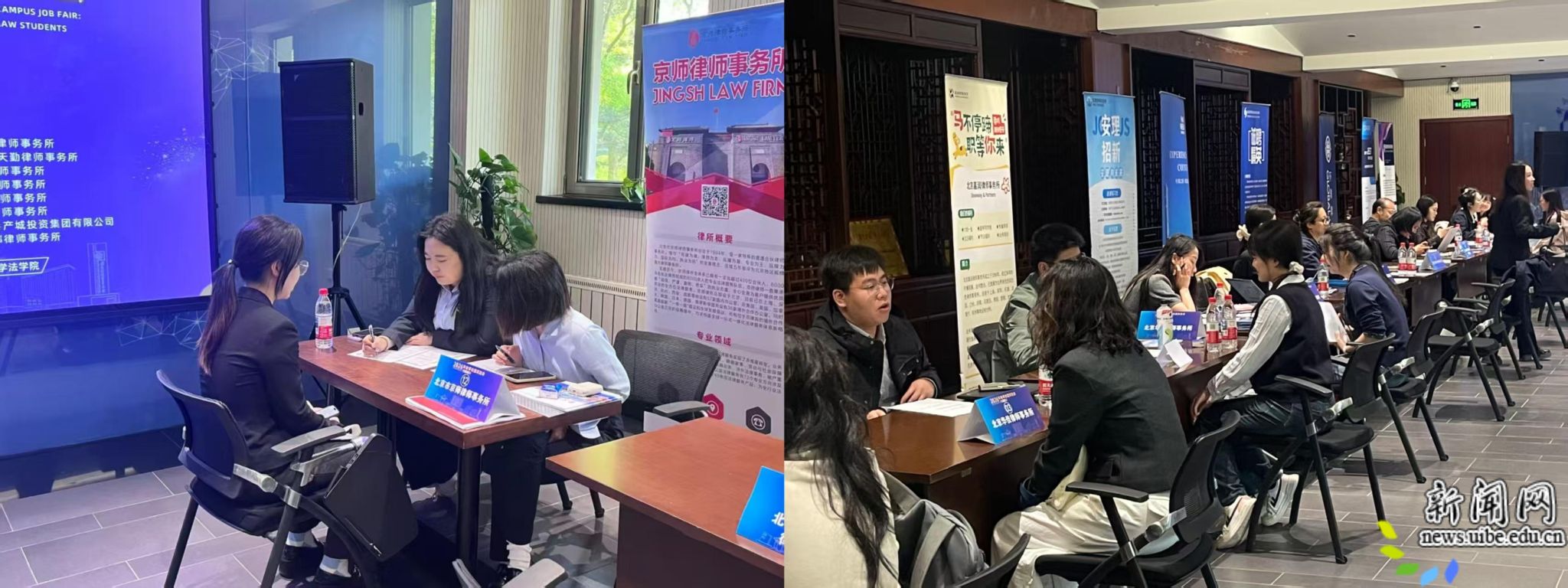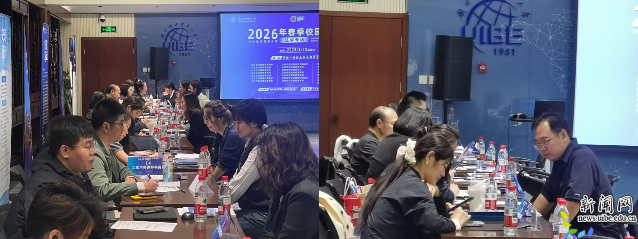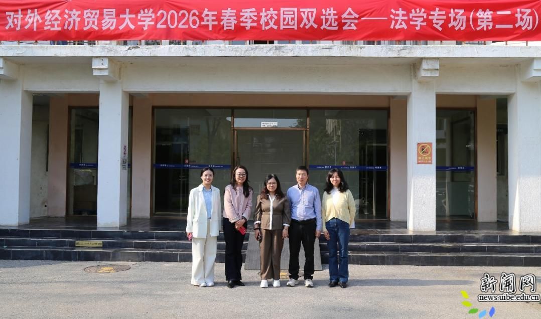 校新闻网讯(法学院供稿)4月23日,对外经济贸易大学2026年春季校园法学专场双选会(第二场)在求真楼一层大厅举办。本次双选会是在学校招生就业处的指导与支持下,由法学院筹办。法学院党委书记李欢欢、党委副书记张莉、招生就业处副处长朱庆、相关负责老师及法学院辅导员共同走访各招聘单位,了解用人需求,同时对各单位进校招聘表示热情欢迎,并向参加本次双选会的学生送上祝福。