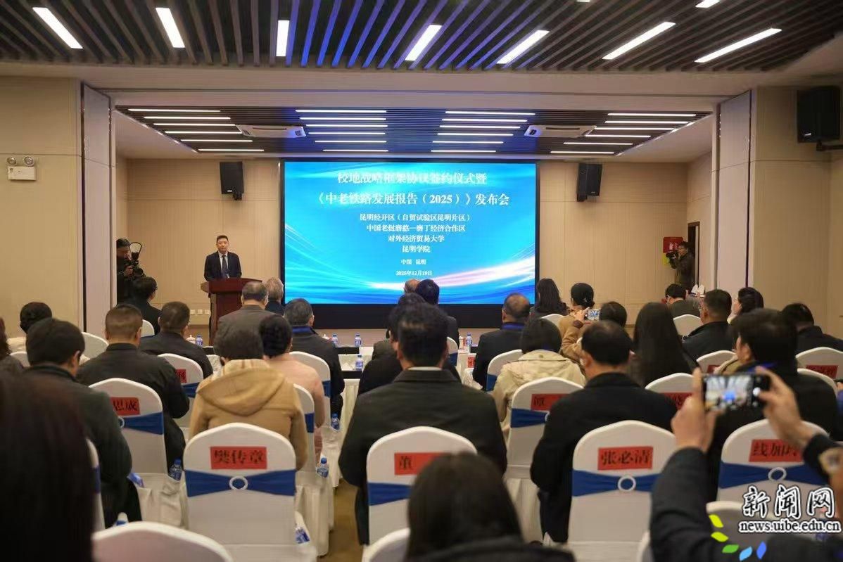 记者从对外经济贸易大学获悉,12月19日,由对外经济贸易大学、昆明学院与昆明经开区(自贸区昆明片区)管委会共同编撰完成的《中老铁路发展报告(2025)》发布。该报告是国内首部系统聚焦中老铁路建设、运营与综合开发的智库研究成果。报告旨在为深化铁路沿线开发、推动区域合作、服务国家战略提供智力支持与决策参考。