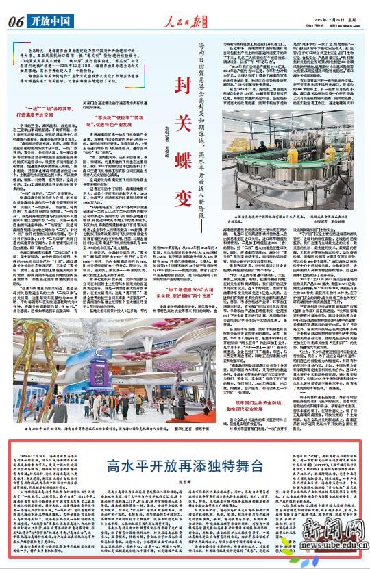 2025年12月18日,海南自由贸易港全岛封关如期落地。这不仅是海南经济社会发展史上的重大节点,更是中国加快建设开放型世界经济、增强国际竞争新优势的有力举措。封关运行,意味着海南岛进入更高水平、更大范围、更深层次的自由化便利化贸易新阶段,成为承载中国探索对接全球经贸规则、开展制度创新的独特舞台。