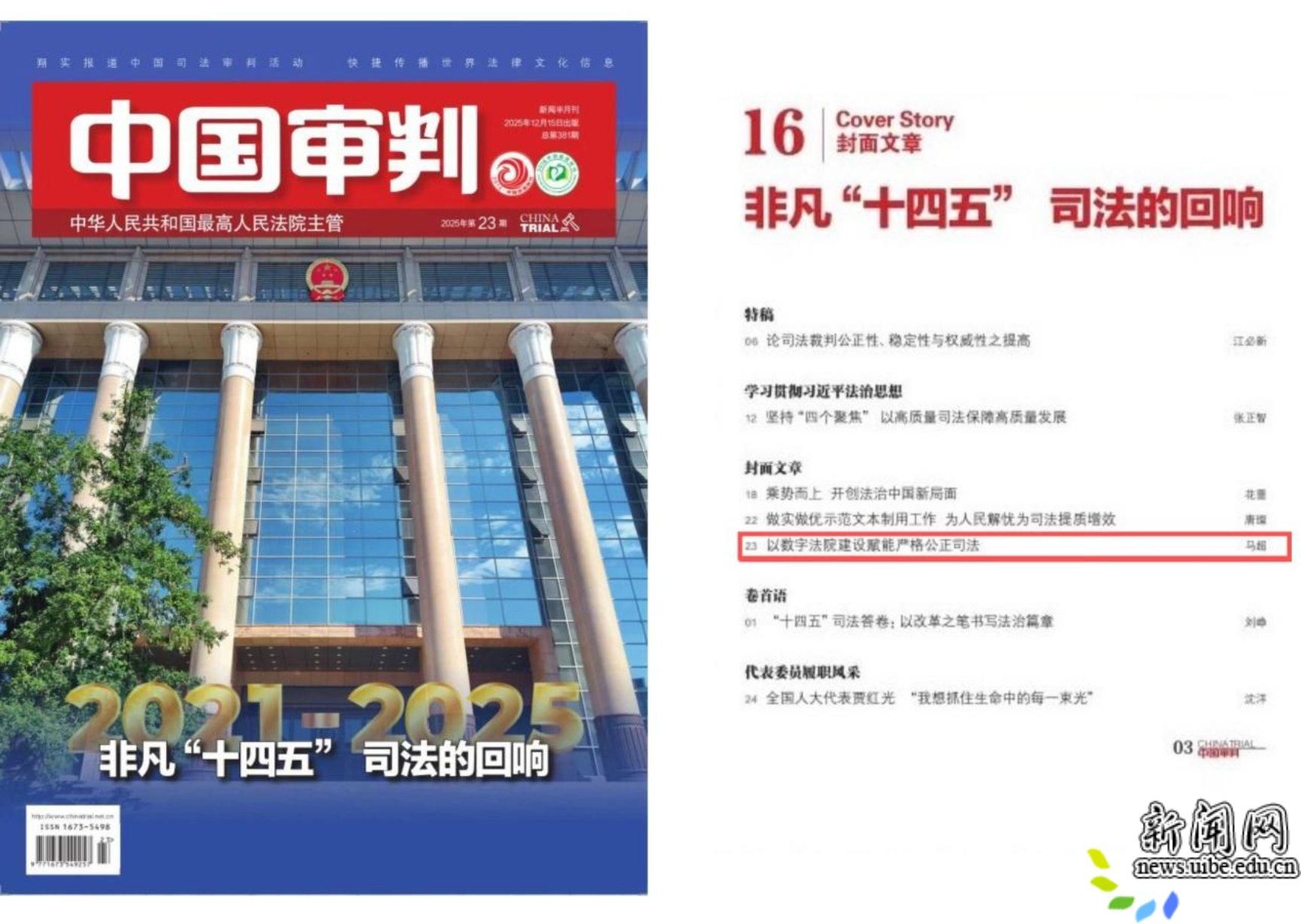 编者按:《中国审判》是由最高人民法院主管的新闻半月刊,是人民法院重要的司法舆论阵地和新闻宣传平台。近日,法学院副教授马超受《中国审判》杂志社邀请,撰文回顾了最高人民法院近年来在数字法院上的建设成效。该文以封面文章形式发表在《中国审判》2025年第23期。