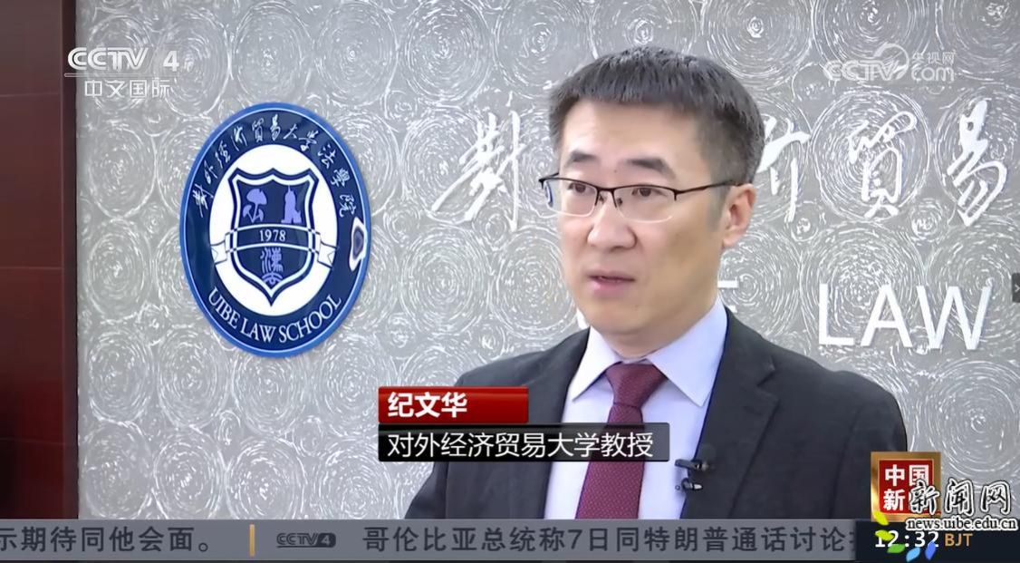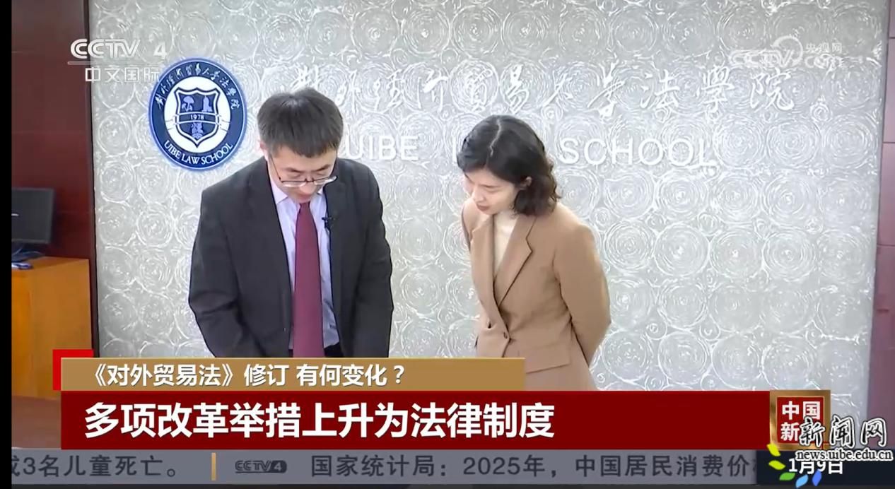 2025年12月27日,全国人大常委会会议表决通过新修订的《对外贸易法》,自2026年3月1日起施行。1月7日、8日、9日,中国国际电视台(CGTN)、央视四套(CCTV-4)先后发布报道,对外经济贸易大学法学院纪文华教授接受采访并就《对外贸易法》修订进行评论。
