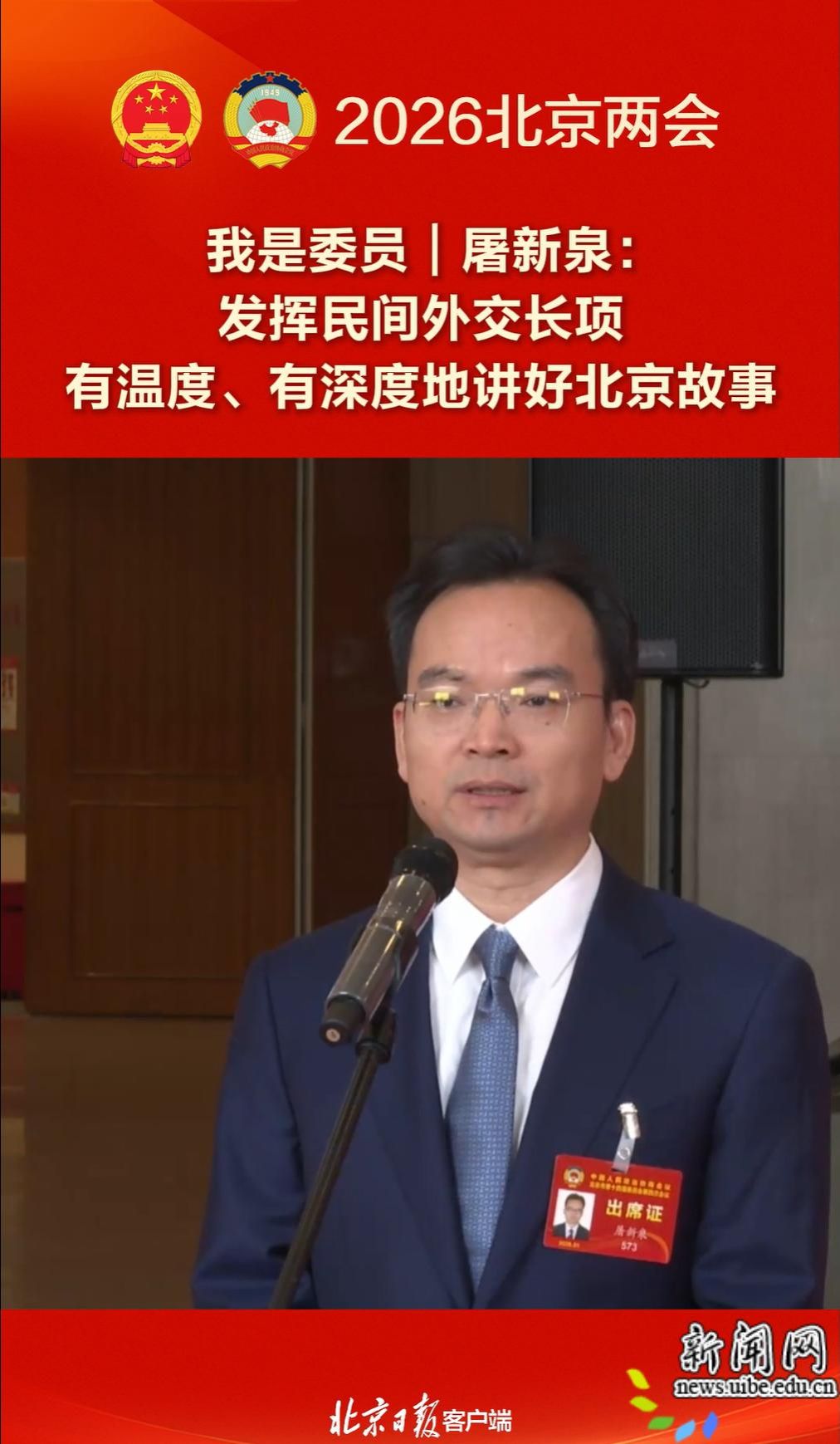 屠新泉说,北京作为首都,承担的核心功能之一,就是建设全国的国际交往中心,这既是北京的光荣使命,也是北京的先天优势。我作为一位来自对外友好界别的政协委员,积极开展民间外交、公共外交,可以说是责无旁贷。同时我也是一名长期关注国际贸易和中国对外经贸关系研究的学者,对外讲好中国故事,阐释中国主张,传播中国理念,也是我的本职工作。