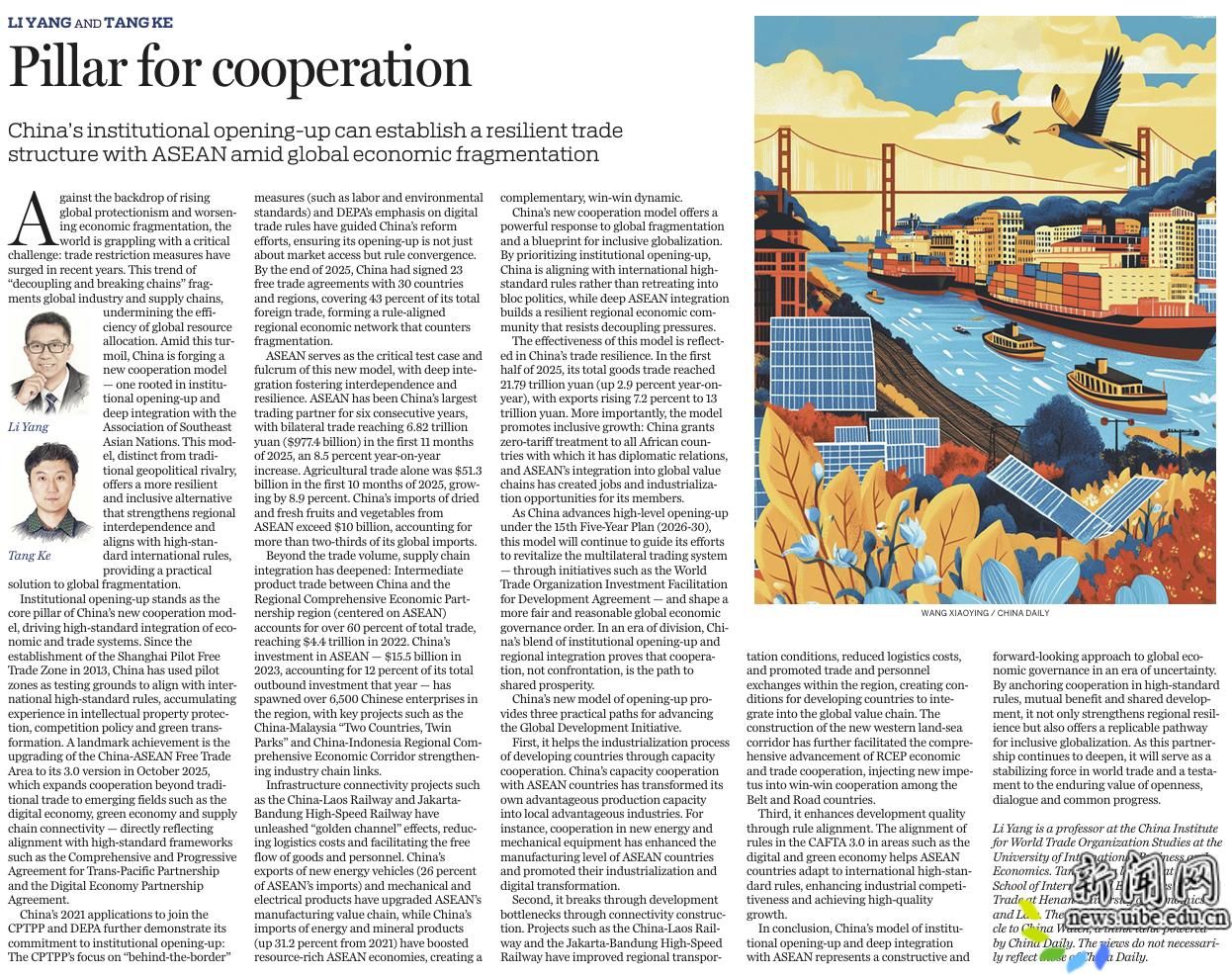 As China advances high-level opening-up under the 15th Five-Year Plan (2026-30), this model will continue to guide its efforts to revitalize the multilateral trading system — through initiatives such as the World Trade Organization Investment Facilitation for Development Agreement — and shape a more fair and reasonable global economic governance order. In an era of division, China’s blend of institutional opening-up and regional integration proves that cooperation, not confrontation, is the path to shared prosperity.
