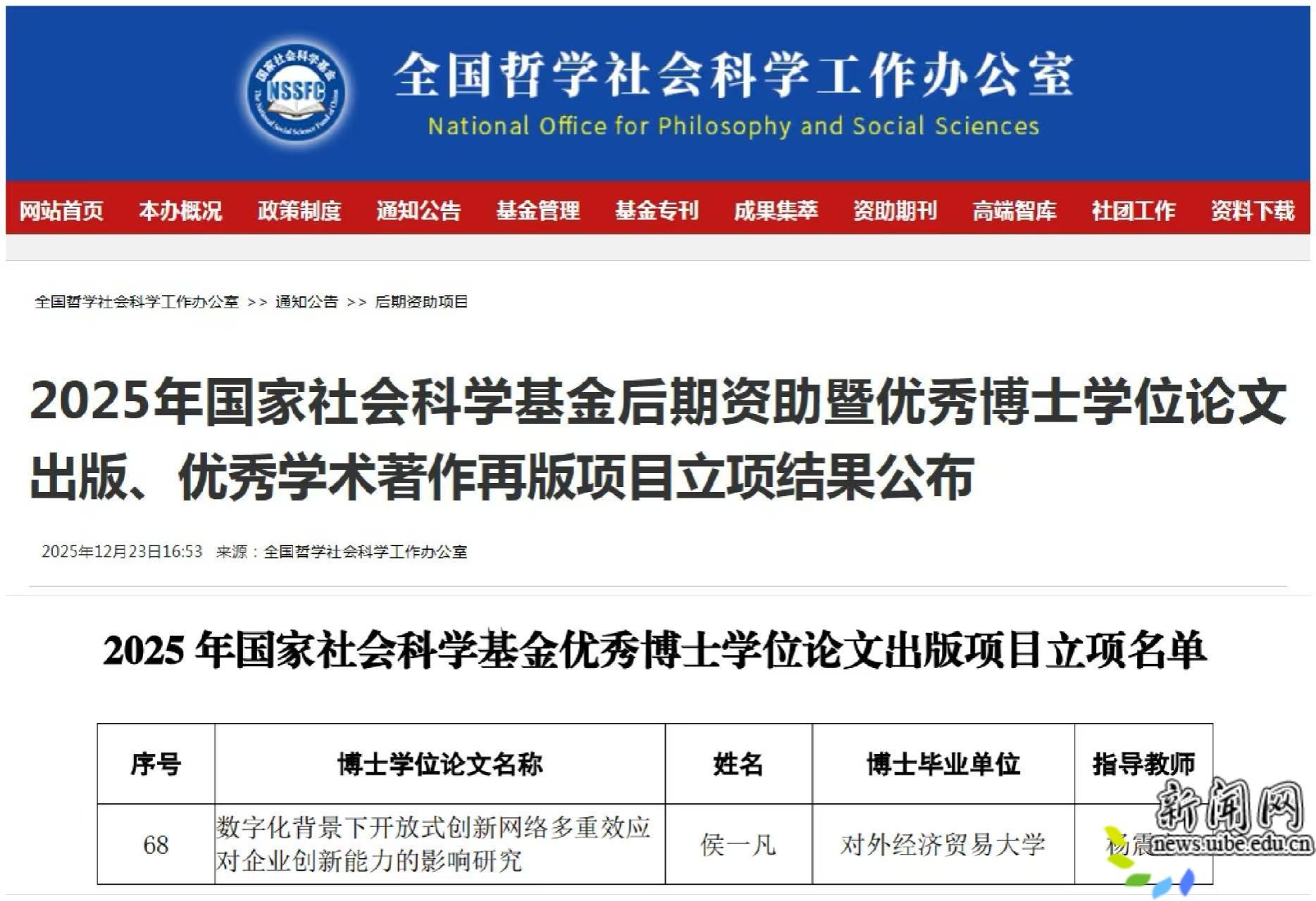 培养成果显著提升。评选年度“学术之星”10人,学术创新奖255人,校级优秀博士学位论文7篇,校级优秀硕士学位论文22篇,高质量学术发表同比增长175%,学术成果量质齐升。我校博士毕业生侯一凡继斩获北京市优秀博士学位论文荣誉之后,成功获批2025年国家社会科学基金后期资助暨优秀博士学位论文出版项目立项。