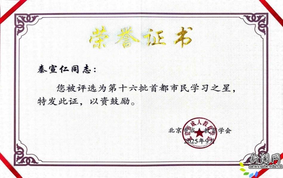 校新闻网讯(离退休人员工作处供稿)近日,北京市公布“首都市民学习之星”名单,对外经济贸易大学秦宣仁教授成功入选。这项荣誉是北京市推进学习型社会建设、弘扬终身学习理念的重要表彰,本批次全市共认定100名先进个人。年过九旬的秦宣仁教授,以“活到老、学到老、干到老”的实际行动,生动诠释了新时代终身学习者的昂扬风貌,为全校师生乃至社会公众树立了光辉的学习榜样。
