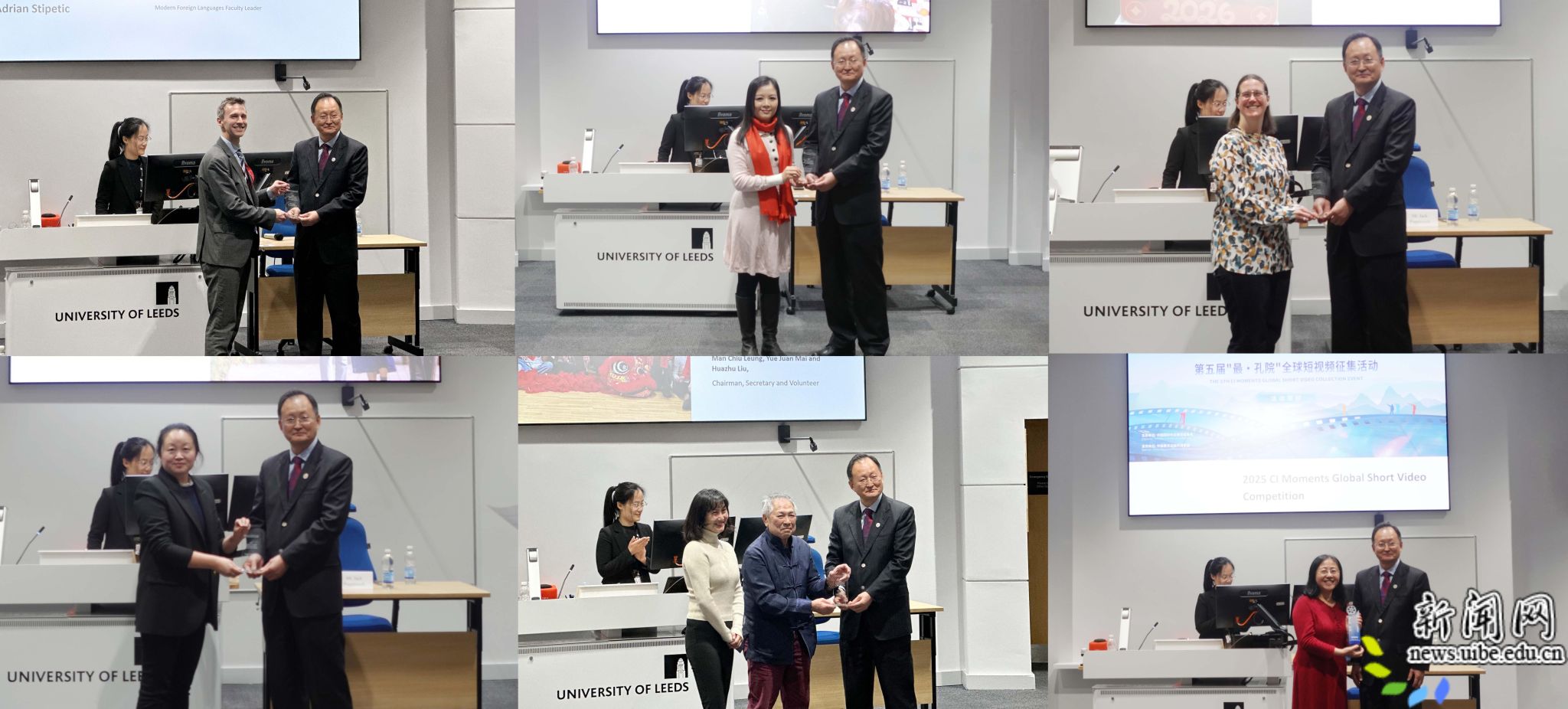 会谈结束后,黄宝印一行参观正在利兹大学展出的利兹商务孔子学院年度系列活动之“汤莎和韵·致敬经典”展览。随后,黄宝印出席“UIBE孔院20周年合作伙伴奖”颁奖仪式,代表学校向孔子学院合作伙伴颁发奖项,表彰其为推动中文教学、促进中英文化交流所做出的贡献。黄宝印书记在致辞中高度肯定利兹商务孔院团队的努力与付出,希望继续发挥桥梁作用,为深化中英人文交流注入新活力。