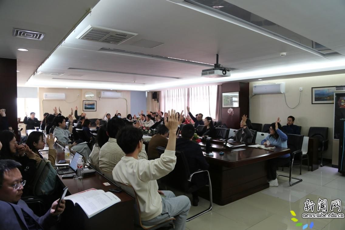 学院党委书记李欢欢作2025年学院党建工作汇报及个人述职。李欢欢总结了2025年法学院党建工作成果,并指出下一步工作举措。她从把牢政治方向筑牢思想根基、科学谋划推动党建与业务深度融合、加强党员先锋队伍凝聚合力、打造高质量党建营造清风贸法氛围和落实意识形态与保密统战工作责任坚守底线等五个方面汇报了学院党建工作。她指出,在学院班子密切配合和全体师生共同努力下,2025年法学院党建工作取得了积极成效。学院党委将继续扛牢职责使命,以高质量党建为引领,以创新为动力强特色,以问题为导向补短板,持续完善“党建+”融合模式,凝聚师生奋进合力,谱写好十五五时期教育强国建设的贸法新篇章。