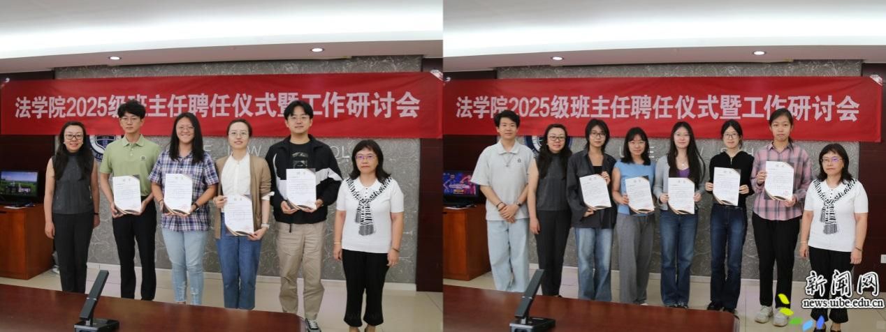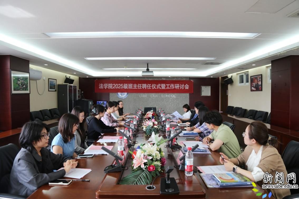 校新闻网讯(法学院供稿)为全面落实立德树人根本任务,加强新生班级建设,夯实育人工作基础,2025年9月26日中午,对外经济贸易大学法学院于宁远楼729会议室举办2025级班主任聘任仪式暨工作研讨会。法学院党委书记李欢欢、党委副书记张莉、优秀班主任代表邓卓行出席会议,2025级新生辅导员、新聘班主任及班主任助理共同参会。会议由2025级新生辅导员邢峻豪主持。