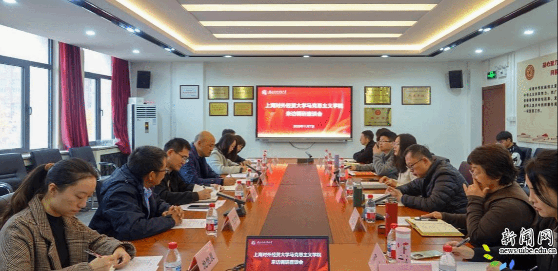 校新闻网讯(马克思主义学院供稿)11月7日,上海对外经贸大学马克思主义学院党委书记刘海泉、副书记刘诚洁、副院长罗国辉一行至学院开展调研交流。学院党总支书记孙晓霞、副书记朱志伟、副院长黄传根及双方学院学科带头人、学系主任、组织员参会。