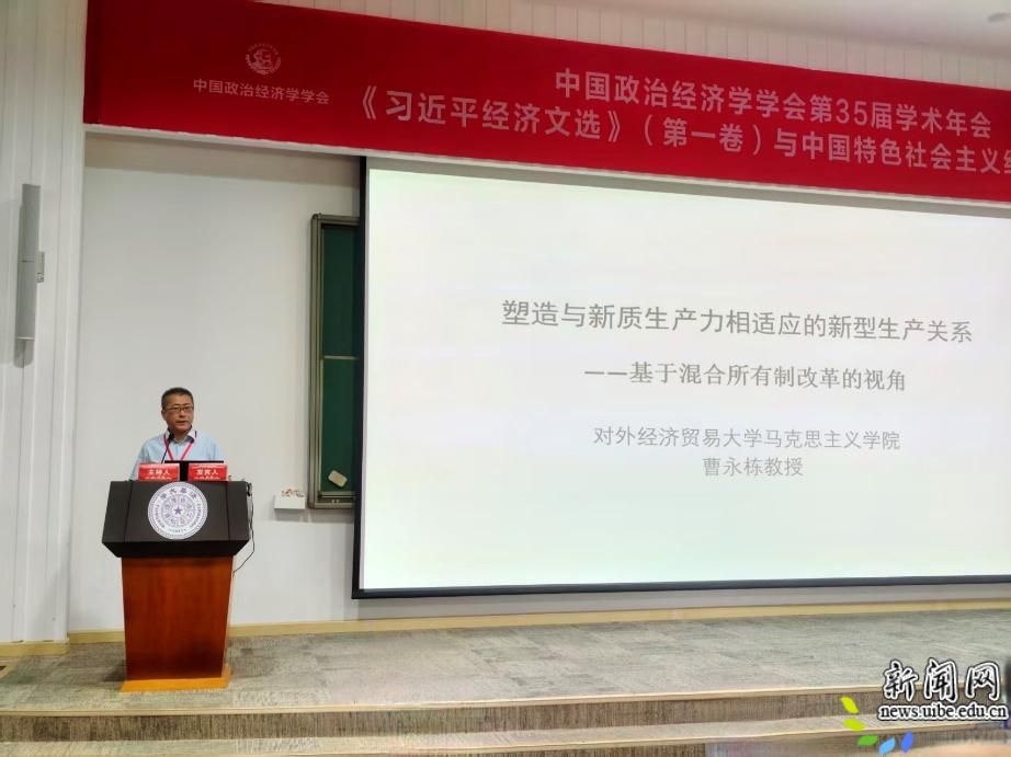马克思主义学院教授、中国政治经济学学会常务理事曹永栋受邀参会,提交与其硕士研究生刘思思合写的题为“塑造与新质生产力相适应的新型生产关系——基于混合所有制改革的视角”的学术论文,并以同样的题目于26日上午做大会发言,受到与会学者好评。(撰稿:曹永栋 审稿:孙晓霞)