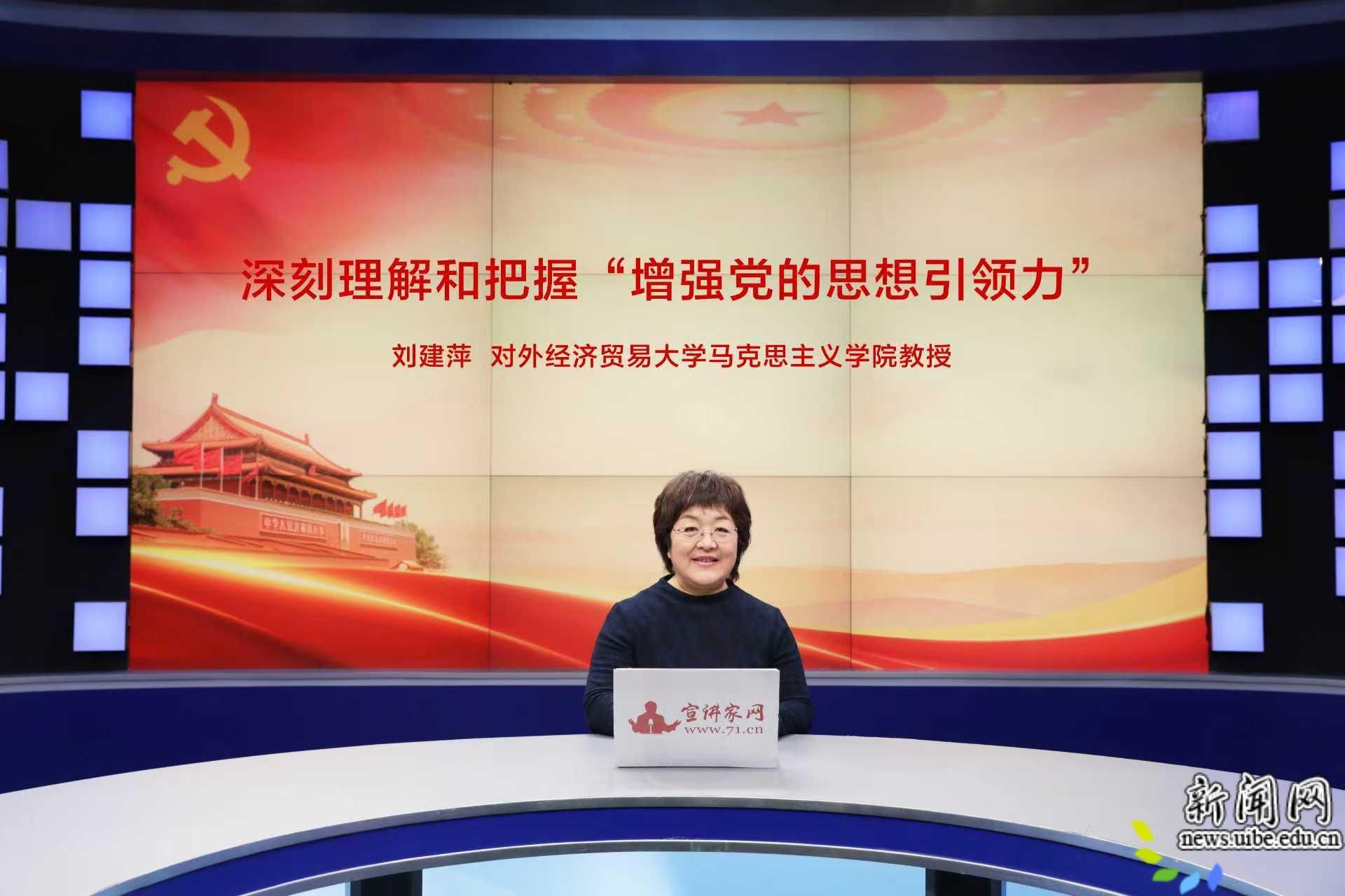 校新闻网讯(马克思主义学院供稿)1月6日,马克思主义学院教授刘建萍受邀为北京宣讲家网讲授录制报告《深刻理解和把握“增强党的思想引领力”》。刘建萍从两大部分进行讲解:一是深刻理解和把握“增强党的思想引领力”的核心内涵与理论渊源,二是准确把握新时代“增强党的思想引领力”的实践要求与提升路径。