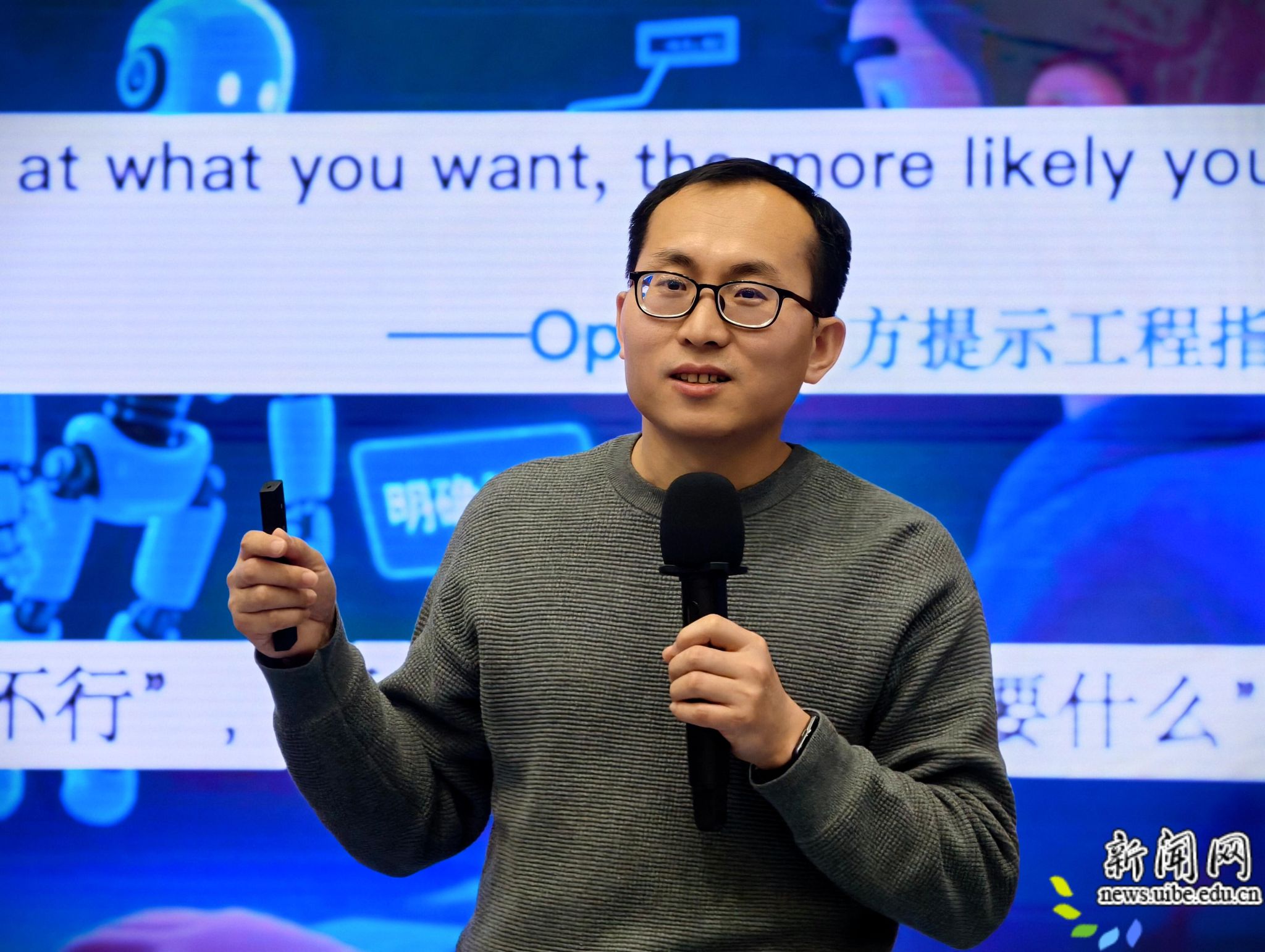 屈启兴长期深耕人工智能与高效管理交叉领域,同时担任电子商务研究所执行长、中国信息经济学会人工智能与变革管理专委会副主任,有着深厚的研究积淀和丰富的实践经验。讲座中,他从人工智能基础认识切入,循序渐进地讲解了 Prompt 工程与提问技巧,结合高校行政工作实际场景,细致拆解了 AI 在高效办公中的具体应用路径,最后聚焦 AI 合规使用的核心要点,为现场教职工厘清了技术应用的边界与规范。