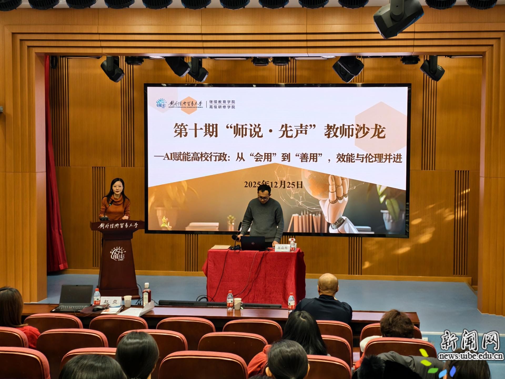 校新闻网讯(继续教育学院供稿)12月26日,我校第十期 “师说 先声” 教师沙龙在高远楼 118 会议室举行。本期沙龙以“AI 赋能高校行政:从“会用”到“善用”,效能与伦理并进” 为主题,搭建高等教育前沿研究交流平台,助力教职工在 AI 时代找准高校行政创新与规范之道。国际经济贸易学院电子商务系主任、博士生导师屈启兴教授担任主讲嘉宾,继续教育学院党总支副书记赵贞主持。
