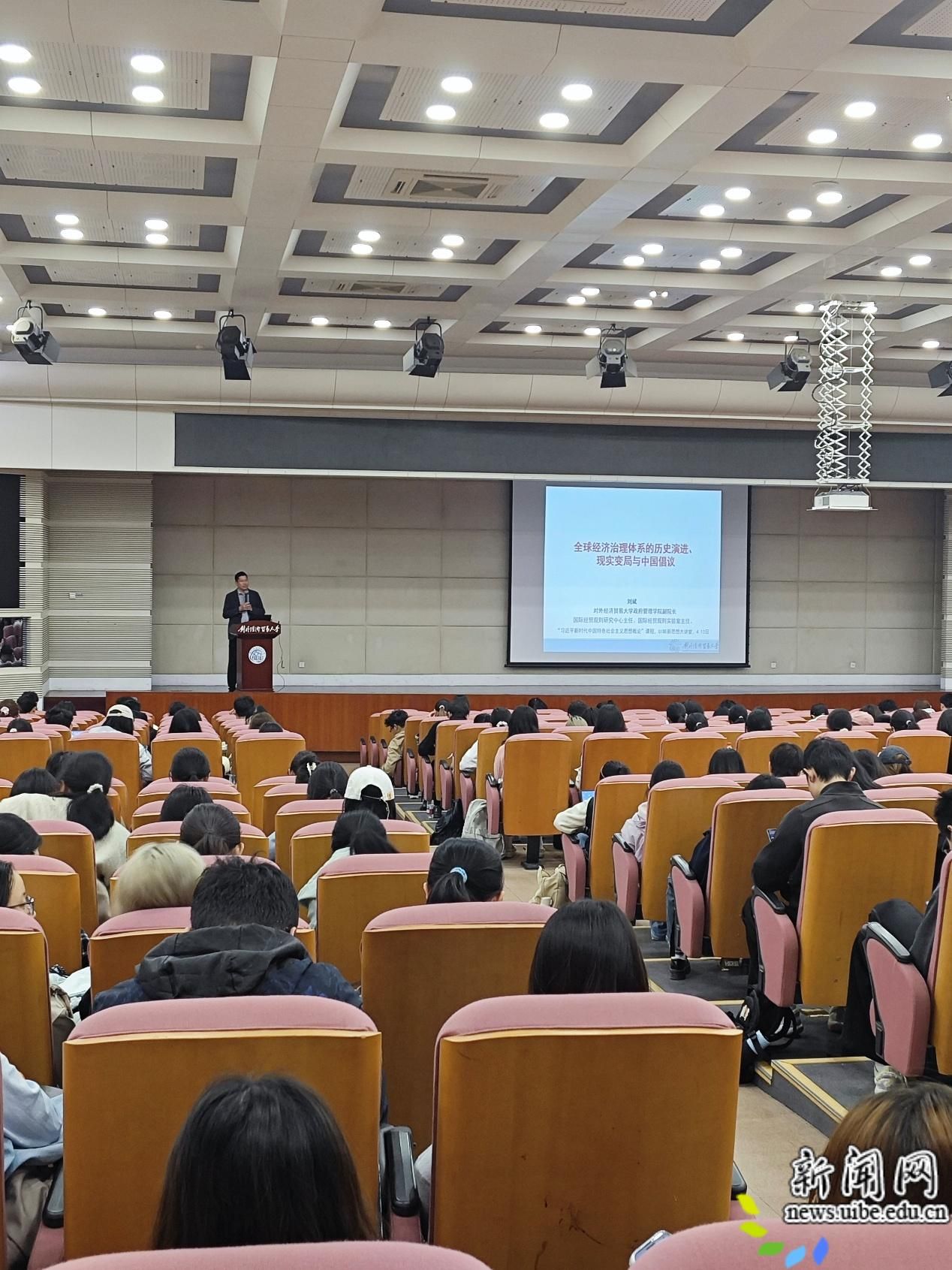 校新闻网讯(马克思主义学院供稿)4月13日,“习近平新时代中国特色社会主义思想概论”课程“UIBE新思想大讲堂”第五讲举行。政府管理学院副院长刘斌以“全球经济治理体系的历史演进、现实变局与中国倡议”为主题,面向500余名青年学生带来了一场精彩的专题报告。讲座由马克思主义学院副教授徐凯峰主持。