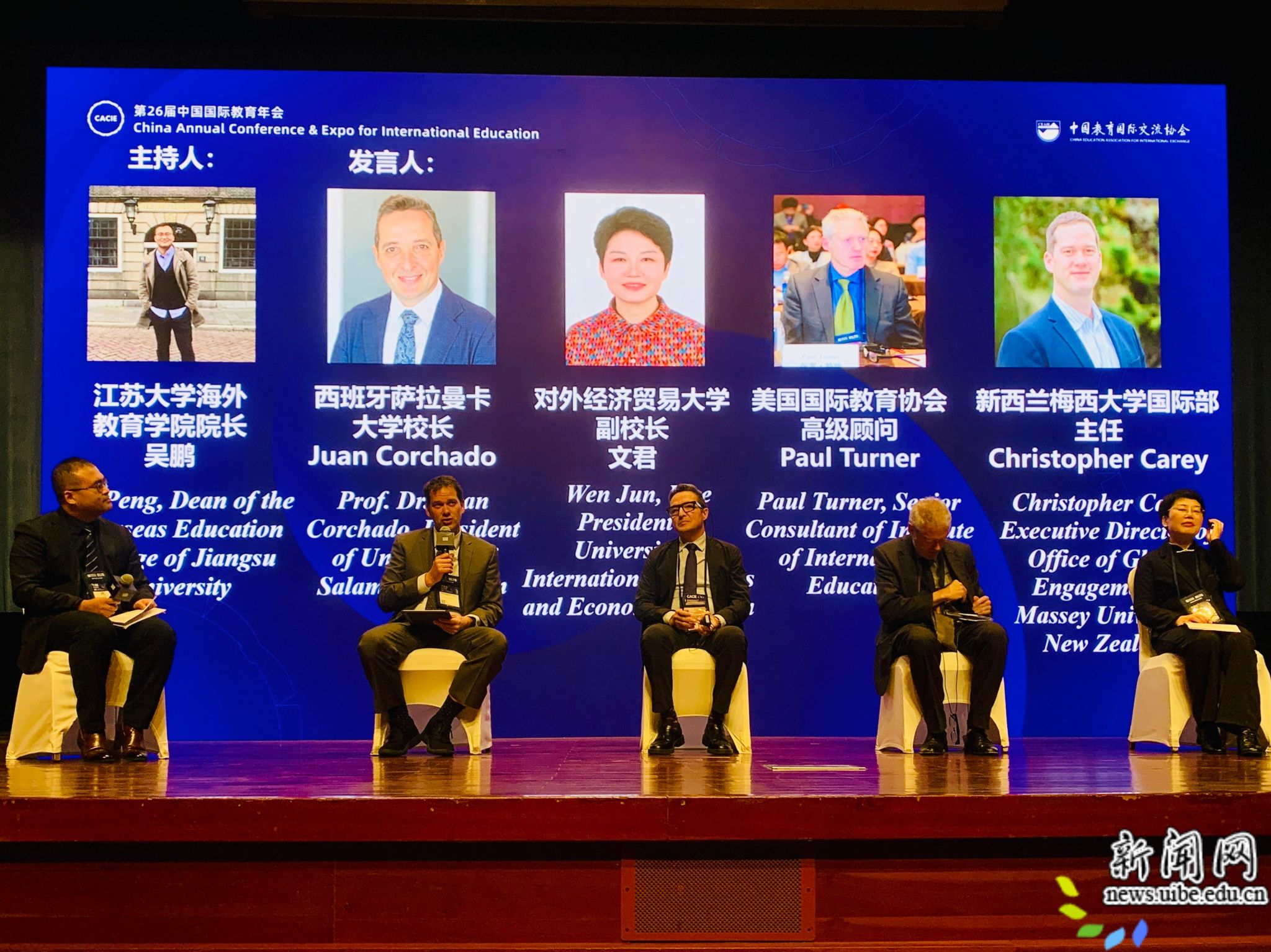 校新闻网讯(国际学院供稿)10月30日,第26届中国国际教育年会《育见中国:来华留学高质量发展国际研讨会》在国家会议中心召开。对外经济贸易大学副校长兼党委副书记文君作为来华留学教育质量认证A等级高校代表,受邀在“全球宏观背景下国际学生流动的机遇与挑战”专题研讨环节做交流发言,分享贸大七十余年来华留学教育实践经验与创新路径。