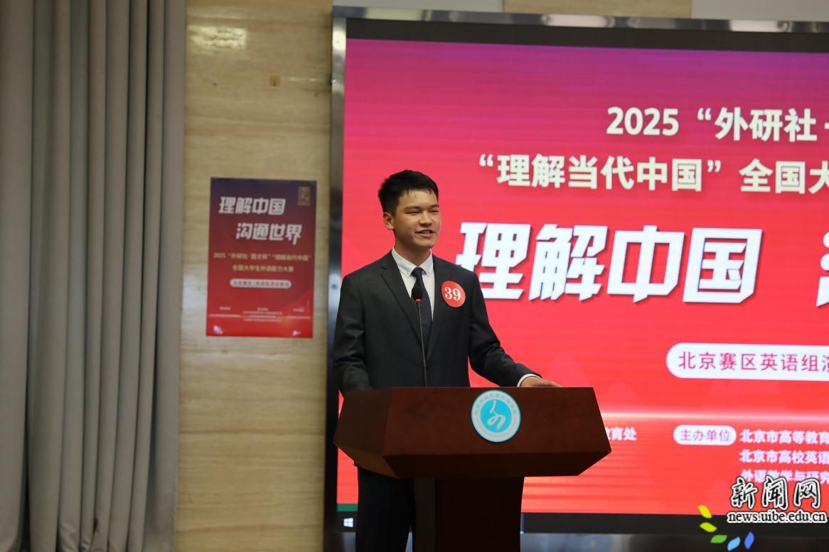 本次大赛竞争异常激烈,吸引了北京市众多高校的精英学子参与。北京市共有100多名选手进入北京赛区复赛。在10月18日举行的首轮线上定题演讲视频赛中,48名选手凭借扎实的语言功底和出色的演讲技巧成功晋级第二轮现场赛。我校推荐的杨开元、苏靖乔两位同学均以优异成绩顺利晋级。