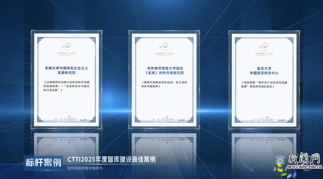 《聚焦打造智库特色品牌,聚力讲好对外开放故事》荣获“CTTI 2025年度智库建设最佳案例标杆案例”。该案例系统展示了研究院通过内部夯实“三有计划”科研根基,外部构建“智库产品矩阵+融媒体平台”传播体系,立足讲好对外开放故事,将高水平智库成果转化为高辨识度智库品牌,显著提升决策影响力、社会影响力与国际影响力的建设路径,为中国特色新型高校智库实现高质量内涵式发展提供了可资借鉴的有效范式。