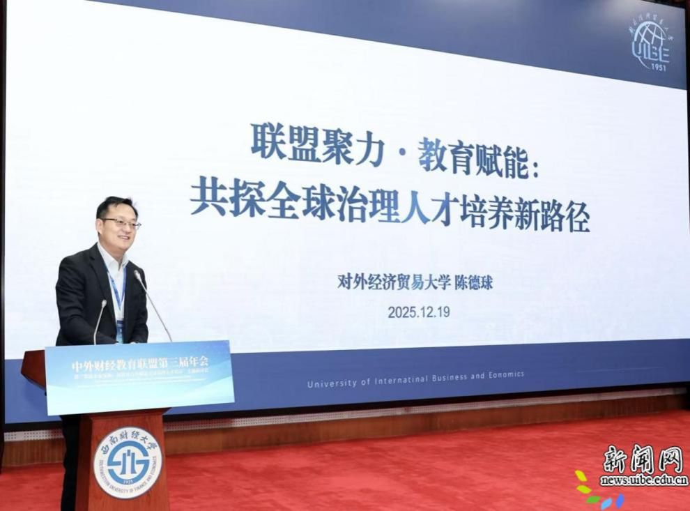 校新闻网讯(国际合作交流处供稿)12月19日,中外财经教育联盟第三届年会暨“塑造未来领袖:以教育合作赋能全球治理人才培养”主题研讨会在西南财经大学召开。我校副校长陈德球应邀出席开幕式并作主旨发言。