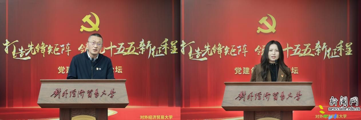 全国高校“双带头人”教师党支部书记“强国行”专项行动团队分享经验。国际经济贸易学院教工第一党支部余心玎分享了“传承贸易强国基因、筑牢支部战斗堡垒、服务对外开放事业”的支部建设理念,“走在前、作表率、树标杆、担使命、争一流”的“五步工作法”。法学院民商经济法学教师党支部江山围绕“党建铸魂强教研 多维融合促发展”,分享了让党建融合在科研中、教学中、育人中、服务社会中的做法与实效。