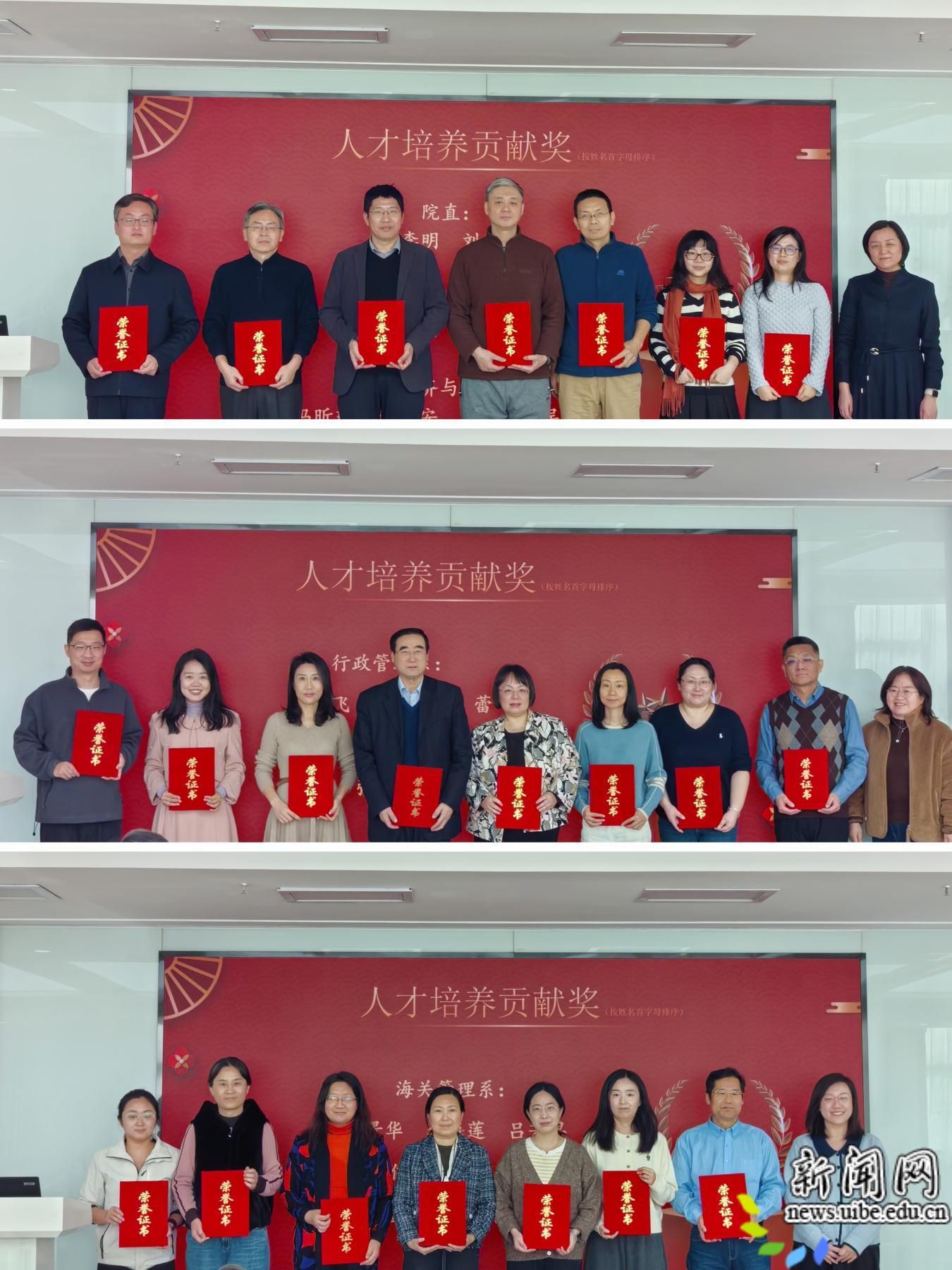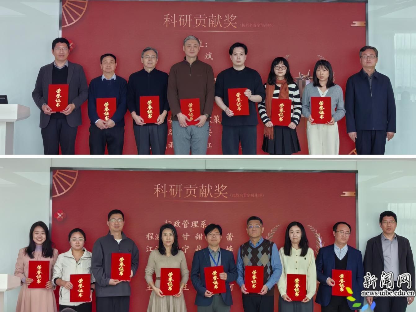 会上,学院对2025年度在人才培养和科学研究方面作出突出贡献的教师进行了表彰,学院领导班子为获奖教师颁发荣誉证书。