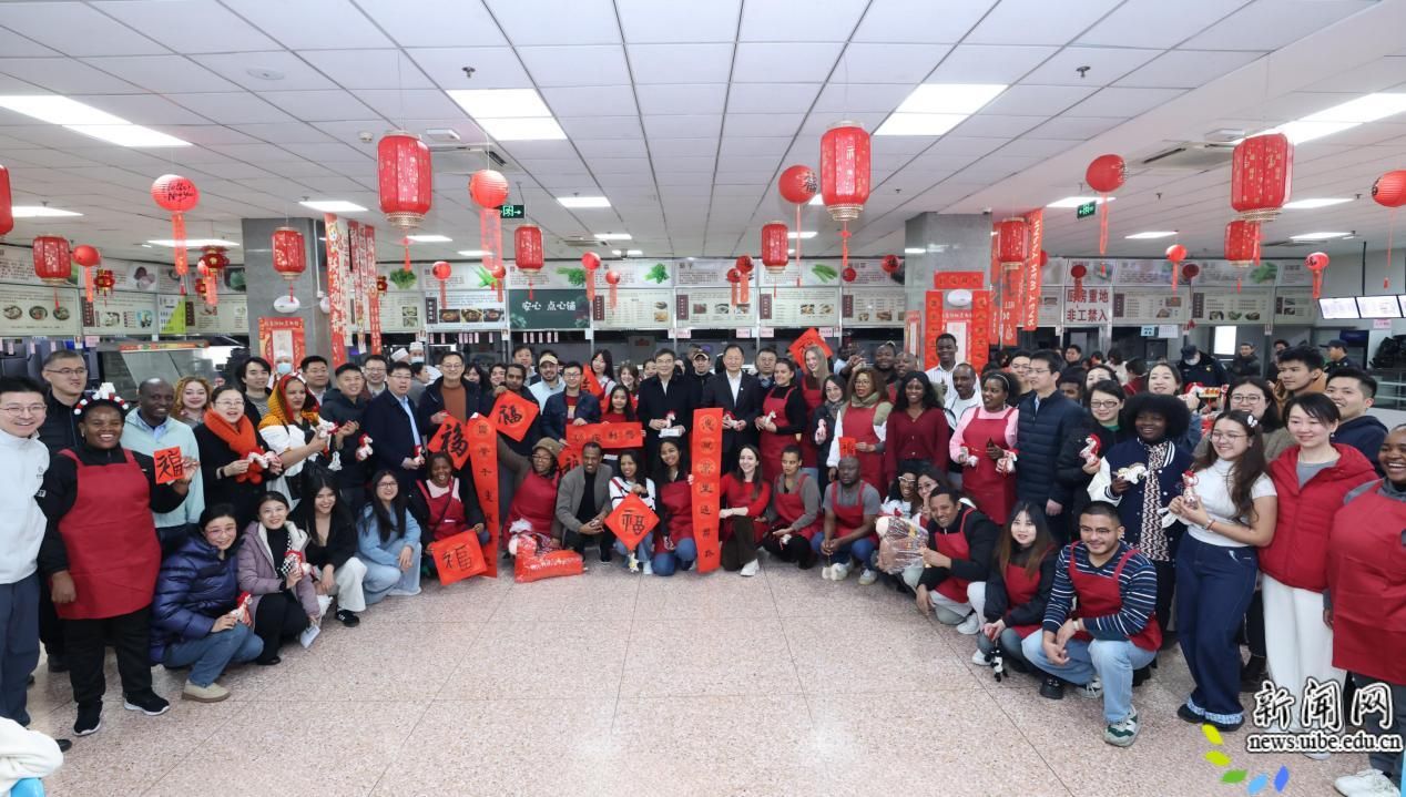学生第一食堂一层暖意浓浓,餐桌上摆放着寓意吉祥的春联、福字,处处洋溢着浓厚的节日氛围。校领导一行实地查看了食堂的节日供餐准备情况,与正在忙碌的食堂员工交流。黄宝印、赵忠秀详细询问了春节期间的菜品安排、食材采购和食品安全保障措施,嘱咐食堂负责人要确保留校师生能够吃到安全、可口、热乎的饭菜,让大家在学校也能吃到“家乡的味道”,过一个暖心年。校领导与中外留校学生一起参加包饺子、写福字、剪窗花等丰富多彩的新年活动。现场欢声笑语,其乐融融。校领导们向全体留校师生拜年,祝愿大家新春快乐、学业进步、工作顺利、阖家幸福。