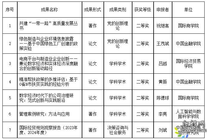 对外经济贸易大学第十八届北京市哲学社会科学优秀成果奖获奖名单