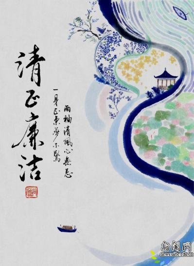 《两袖何止清风》由人工智能与数据科学学院学生孔灵培创作。这幅水墨画作品以清风为形、荷花喻廉、亭台明志,以艺术语言倡导廉洁立身、清白做事,入选公益作品创意成果。