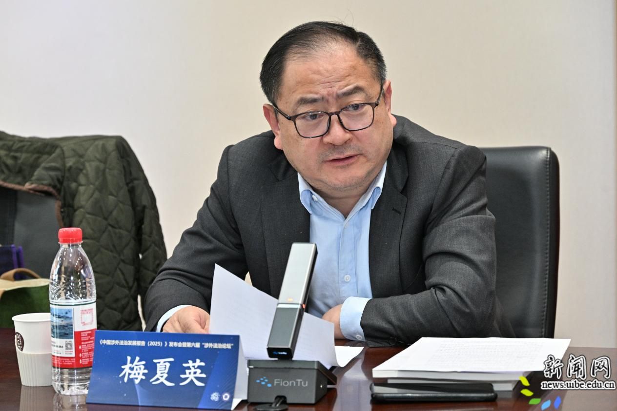 学校涉外法治研究院常务副院长陈卫东教授作汇报。报告系统梳理了2025年中国涉外法治发展重大事件,总结了我国在共建“一带一路”、数据治理、营商环境、对外交往、反制裁、出口管制、对外贸易、涉外投资、涉外金融、反垄断、知识产权、国际私法、国际商法、海商海事、国际商事争议解决等十五个涉外法治领域的主要进展与亮点,全面展现了我国在涉外立法、执法、司法、法律服务和主动参与国际规则制定等方面的最新成果。