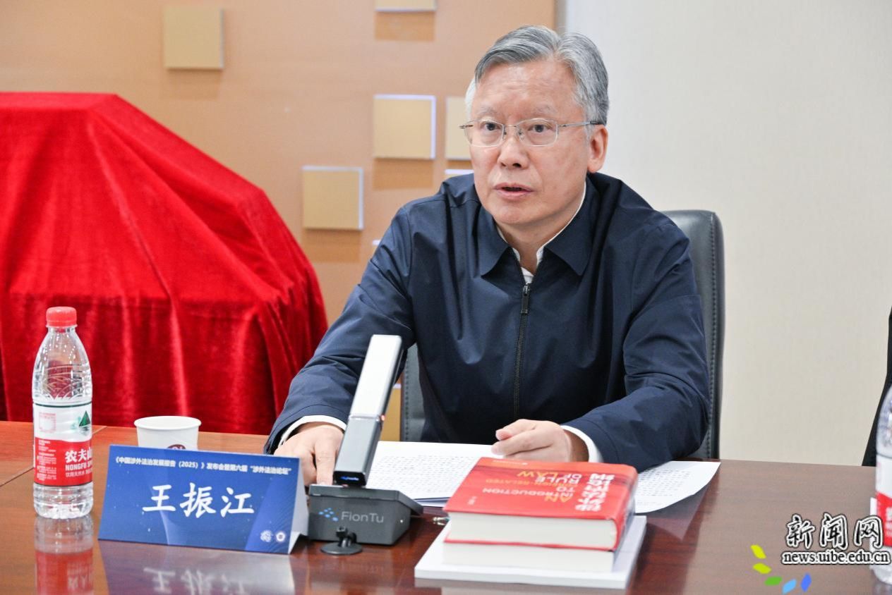 王振江结合当前国际形势与涉外法治实践,围绕进一步繁荣涉外法学研究、服务涉外法治实践提出四点思考:一是始终坚持以习近平法治思想为指引,把习近平法治思想作为开展涉外法治教学、繁荣涉外法学研究、服务涉外法治实践的根本遵循和行动指南;二是充分发挥“一带一路”法治研究基地作用,深化涉外法治理论研究,对接国际高标准经贸规则,聚焦涉外法治领域前沿课题,持续拓展研究的广度与深度;三是大力服务涉外法治实践,推动理论与实践双向奔赴,立足中国实践、解决中国问题;四是完善人才培养机制,夯实涉外法治人才根基,完善以实践为导向的培养机制,培养能参与全球治理的高素质涉外法治人才。