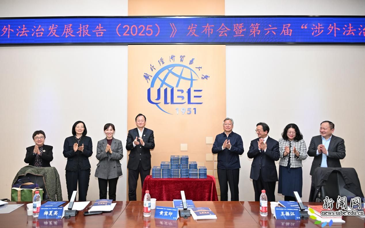 校新闻网讯(法学院供稿)3月28日,由对外经济贸易大学涉外法治研究院和法学院联合主办的《中国涉外法治发展报告(2025)》发布会暨第六届“涉外法治论坛”在学校行政楼222会议室举行。中国法学会党组成员、副会长王振江,司法部涉外法治工作局副局长李蕊,最高人民法院民四庭一级高级法官刘慧卓,商务部条约法律司二级巡视员王蔷,中国法学会研究部二级巡视员唐盛利,沈阳师范大学校长杨松,知名国际法专家一苇教授,对外经济贸易大学党委书记黄宝印,学校党委常委、副校长兼涉外法治研究院院长梅夏英共同出席发布会。