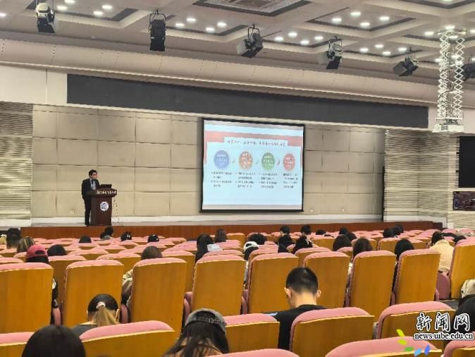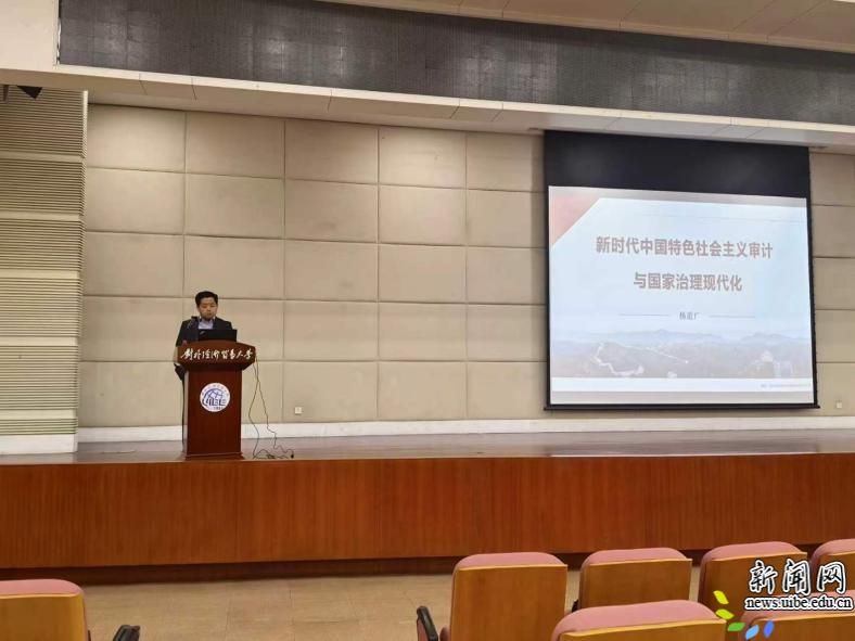 校新闻网讯(马克思主义学院供稿)4月9日,“习近平新时代中国特色社会主义思想概论”课程“UIBE新思想大讲堂”第四讲在宁远楼三层报告厅举行。本次讲座由我校国际商学院博士生导师杨道广教授主讲。他以“新时代中国特色社会主义审计与国家治理现代化”为题,为500余名学生带来一场精彩纷呈的学术讲座。讲座由马克思主义学院张立国老师主持。