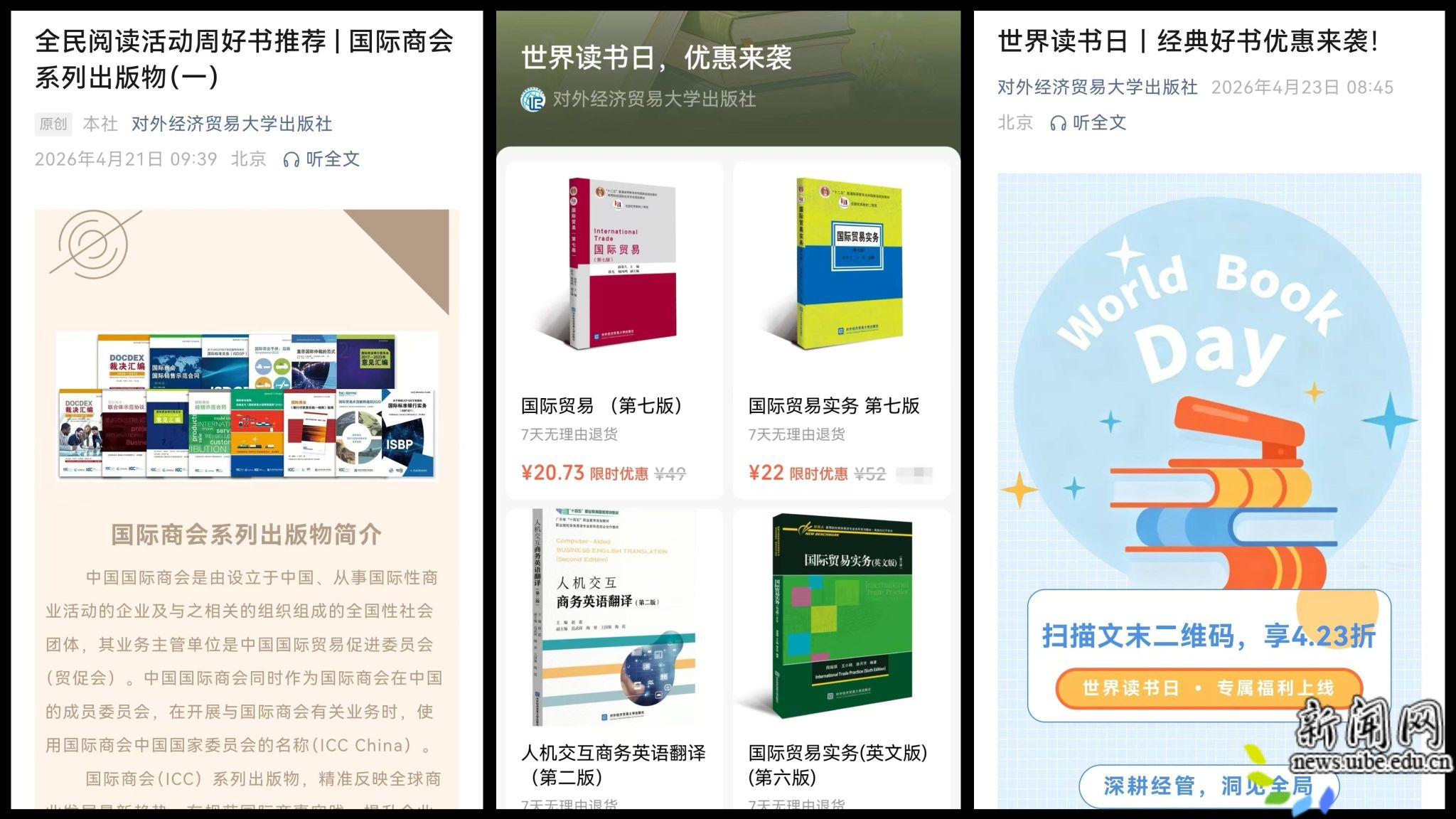 为深入贯彻《全民阅读促进条例》,扎实推进书香校园建设,贸大出版社年内还将持续开展一系列高品质阅读推广活动,如《中国国际投资发展史》《国别商务环境研究系列丛书(第四批)》”等国家出版基金系列作品新书发布暨学术研讨会、《中国古典美学九讲》读书清谈会和系列精品图书推介、公益推广等,推动全民阅读理念在惠园落地生根,让阅读融入日常、浸润惠园,以浓郁书香献礼贸大建校75周年,用文化力量赋能学校高质量发展。(撰稿:郝子溪 审稿:余兴发)