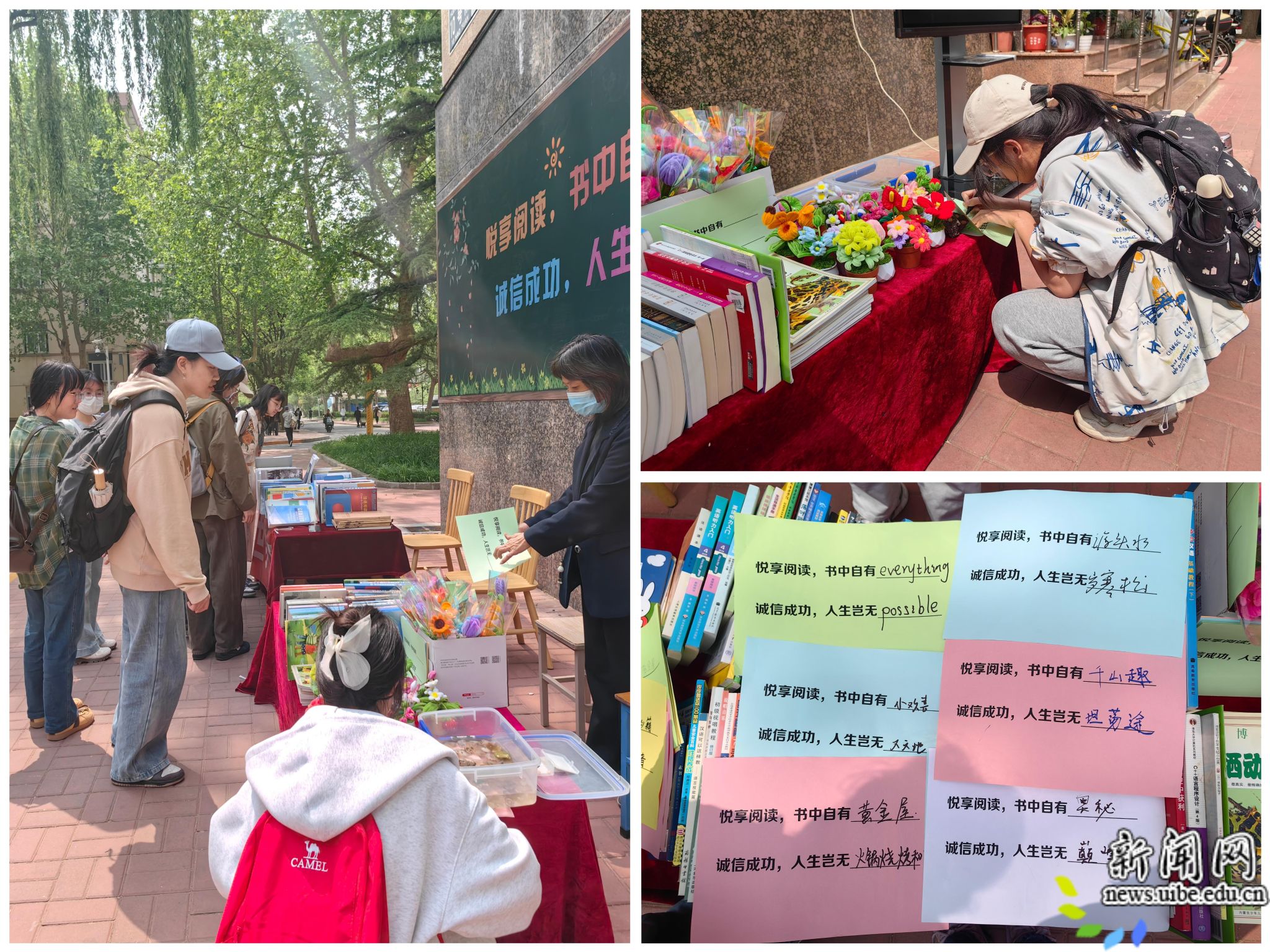 活动以“悦享阅读,书中自有;诚信成功,人生岂无”填词创作为主题,不设标准答案。路过师生纷纷驻足提笔、踊跃作答,在一字一句间续写诗意、传递书香。每位参与活动的师生都收获了手工编织花与书香小礼,现场氛围温馨热烈,成为春日惠园里一道动人的文化风景。