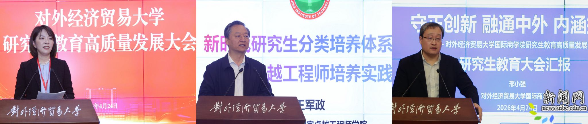 校新闻网讯(研究生院供稿)4月24日,对外经济贸易大学研究生教育高质量发展大会在国际交流大厦二层报告厅召开。本次大会以“服务国家使命 培育卓越英才”为主线,立足建校75周年新起点,全面总结学校研究生教育“十四五”发展成就,系统部署“十五五”高质量发展重点任务,发布《对外经济贸易大学研究生教育高质量发展行动计划》,揭牌“卓越人才培养学院”“研究生导师发展中心”两大重要平台,为加快建设特色鲜明、世界一流的研究生教育体系凝心聚力、蓄势前行。