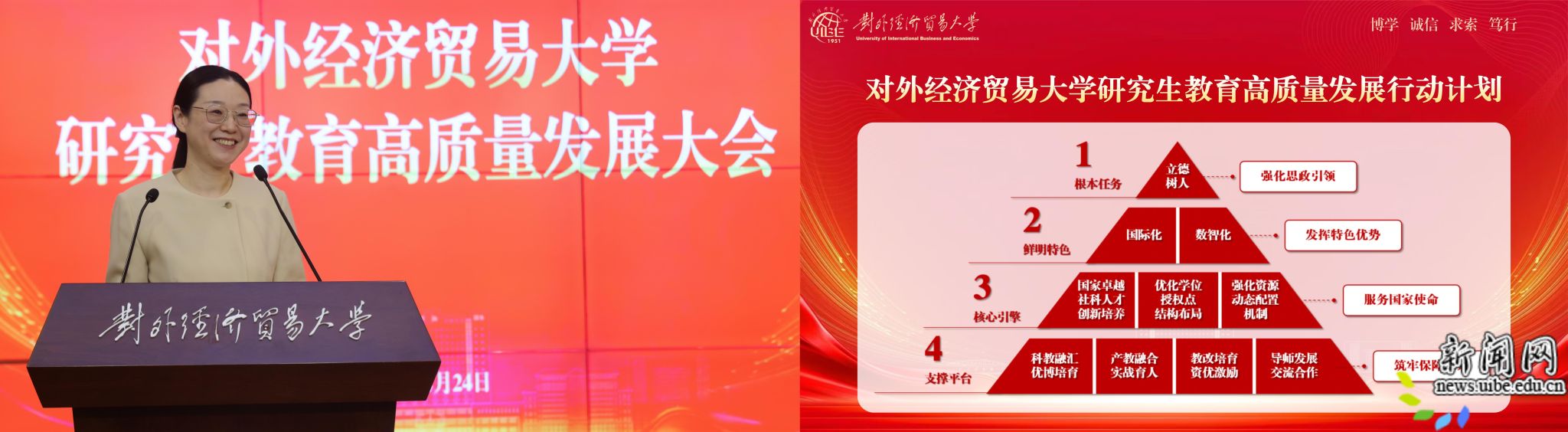 大会正式发布《对外经济贸易大学研究生教育高质量发展行动计划》,聚焦大思政育人、卓越社科人才培养、优化学位点建设、多元分类选拔、国际化特色发展、数智创新赋能、科教融汇培养、产教融合育人、激励体系建设、助力导师发展等十大领域,推出一系列硬核改革举措,全面覆盖研究生教育全链条、各环节,是学校下一步推动研究生教育高质量发展的总纲领、任务书和路线图。