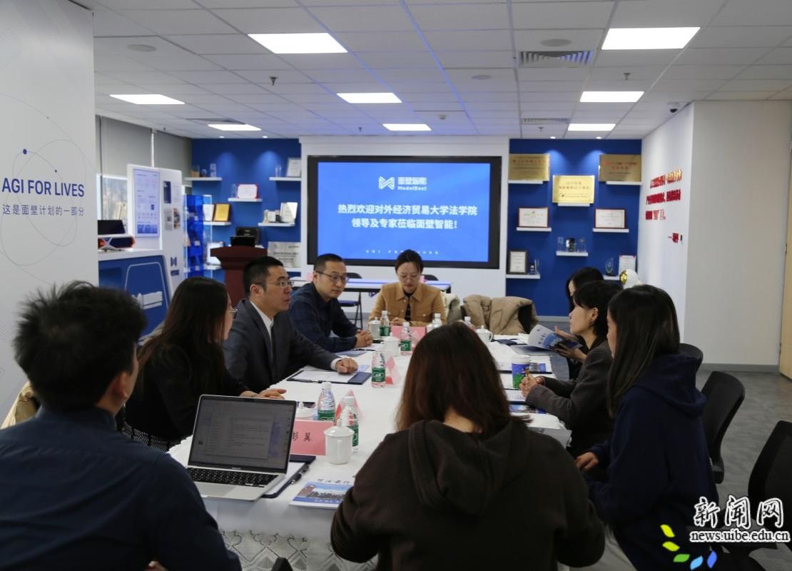 法学院院长冯辉教授、党委副书记张莉、副教授马超、助理研究员杨未名、研究生辅导员吴姝琪一行赴面壁智能参加仪式并座谈交流。面壁智能副总裁、法律业务负责人舒怡,院校合作负责人王巍等出席仪式,双方围绕合作事宜展开深入交流。