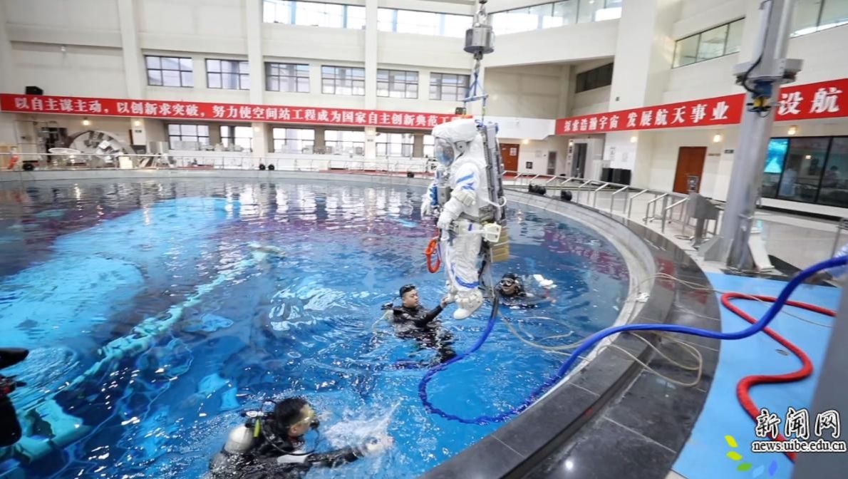 参观团队随后实地观摩模拟失重训练水槽与空间站组合体模拟器。直径达23米的失重训练水槽,借助浮力平衡技术高度模拟太空微重力环境,是航天员完成舱外任务训练的核心设施。而1:1还原的空间站组合体模拟器,则生动呈现航天员在轨期间工作与生活的真实场景,充分体现了我国载人航天任务地面支持体系的周密设计与严谨保障。