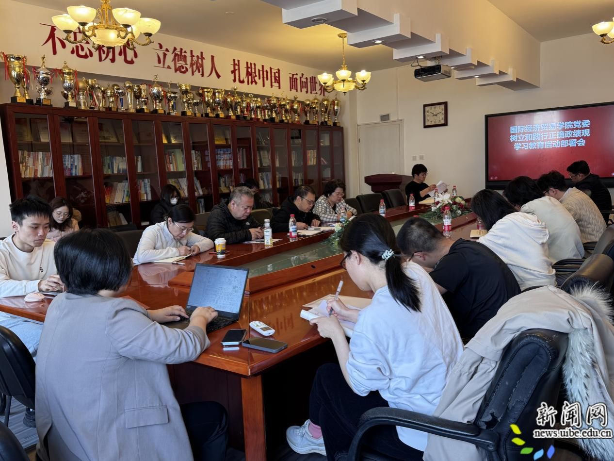校新闻网讯(国际经济贸易学院供稿)3月12日,国际经济贸易学院党委召开树立和践行正确政绩观学习教育启动部署会,学院党委委员和师生党支部书记参加会议。
