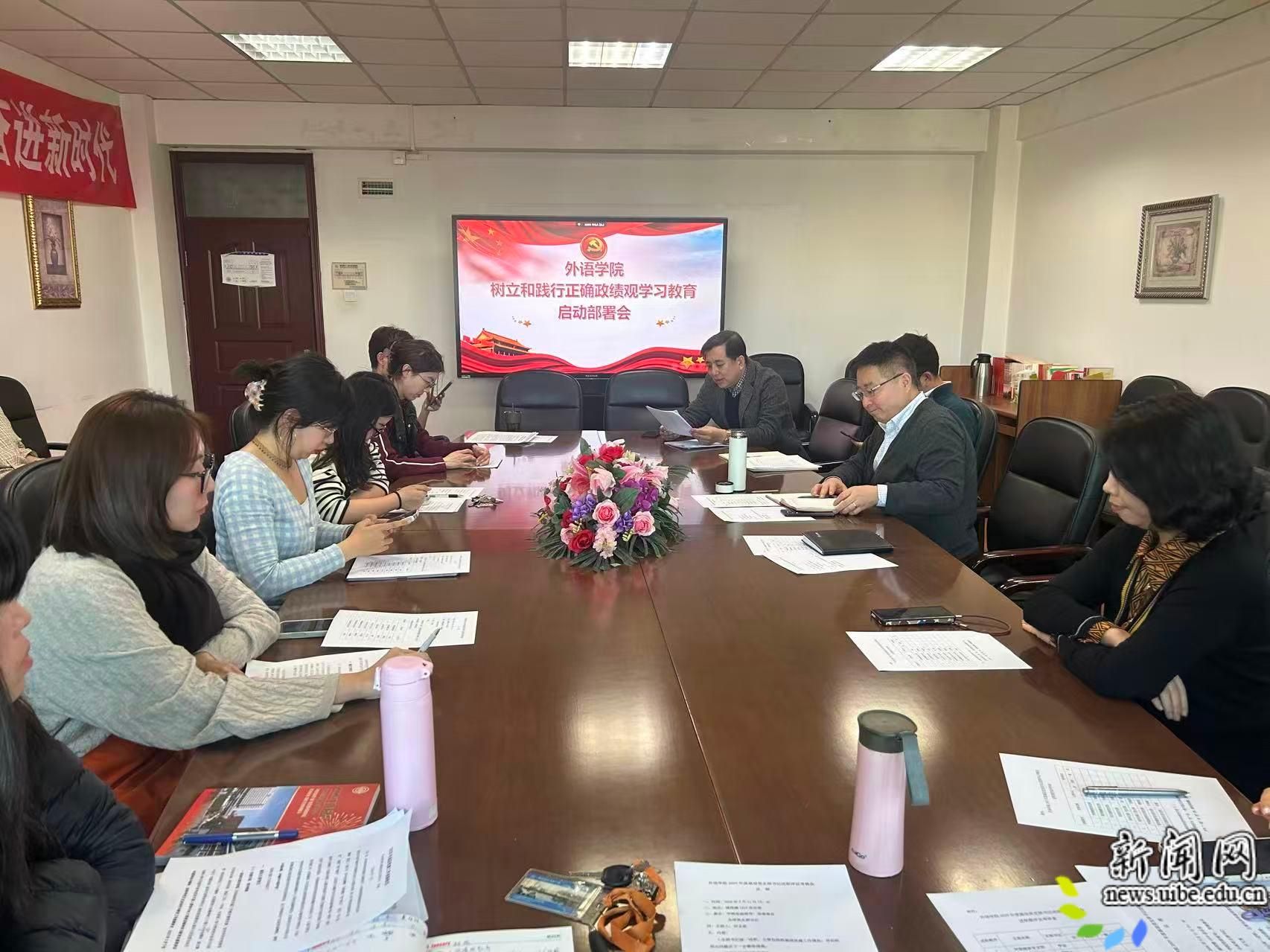 校新闻网讯(外语学院供稿)自我校开展树立和践行正确政绩观学习教育以来,外语学院党委严格按照学校党委要求,以高度的政治自觉迅速启动部署、有序开展主题教育。3月11日,外语学院党委召开树立和践行正确政绩观学习教育启动部署会,学院党政领导和全体支部书记、组织员参会。会上,院党委书记田文泉传达了党中央开展树立和践行正确政绩观学习教育的重要指示,认真学习了我校学习教育实施方案,并部署了学院学习教育工作安排。与会人员表示,将坚决按照党中央部署和学校要求,扎实开展学习教育,引领师生群众牢固树立和践行正确政绩观,以务实的工作作风、扎实的工作成效推动学院事业高质量发展。